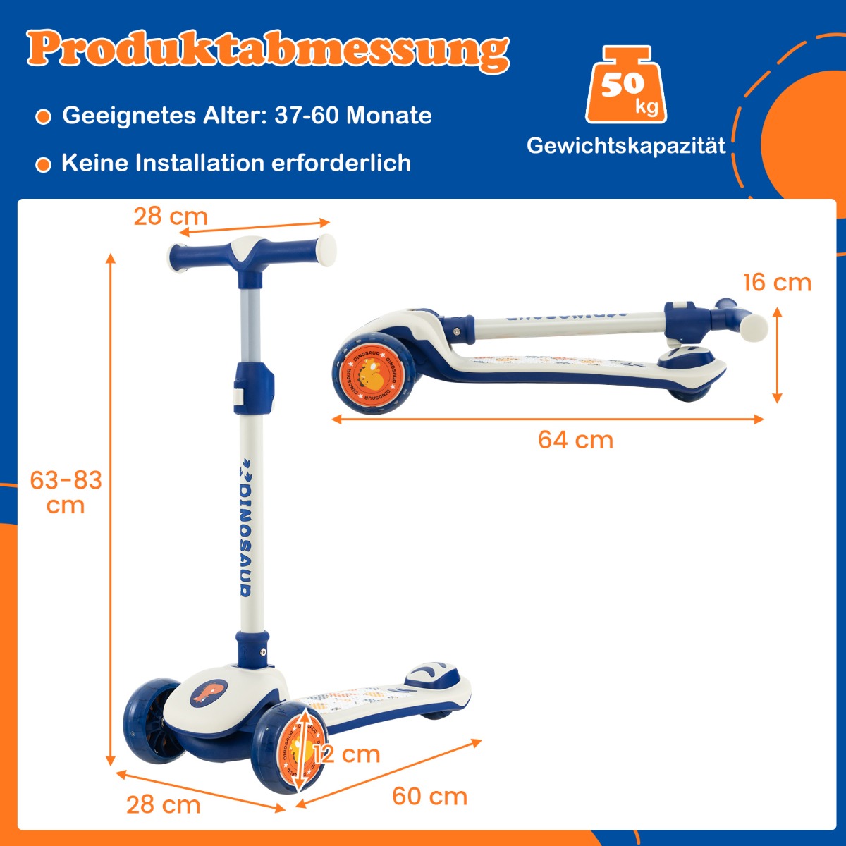 - Ελεύθερα ρυθμιζόμενο ύψος: Αυτό το αναδιπλούμενο πατίνι διαθέτει ρυθμιζόμενο ύψος από 60–83 cm, που προσαρμόζεται σε παιδιά διαφορετικού μεγέθους από 3-5 ετών. Η ρύθμιση ύψους γίνεται μέσω ενός συστήματος διπλού κλειδώματος που αποτρέπει την τυχαία ρύθμιση από τα παιδιά σας.