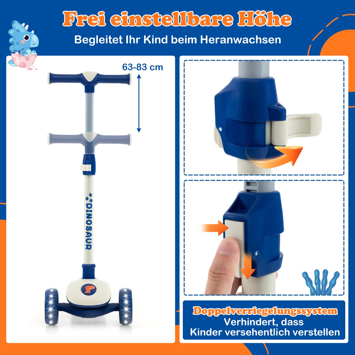 - 63-83 cm ελεύθερα ρυθμιζόμενο ύψος για παιδιά διαφορετικού μεγέθους
