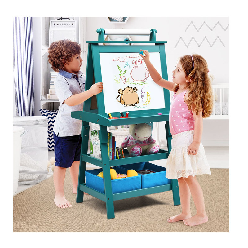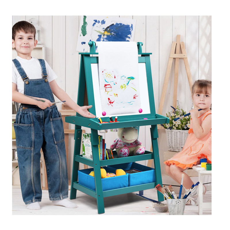Ξύλινος Παιδικός Μαυροπίνακας / Πίνακας 3 σε 1 Διπλής Όψης Costway TY327442BL