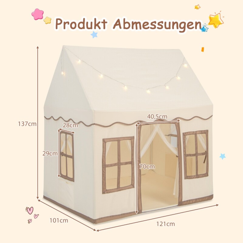 Costway Παιδική Σκηνή Μεγάλη Παιχνιδόσκηνη με Αστέρια 121 x 101 x 137 cm Ανοιχτό Καφέ TP10088CF