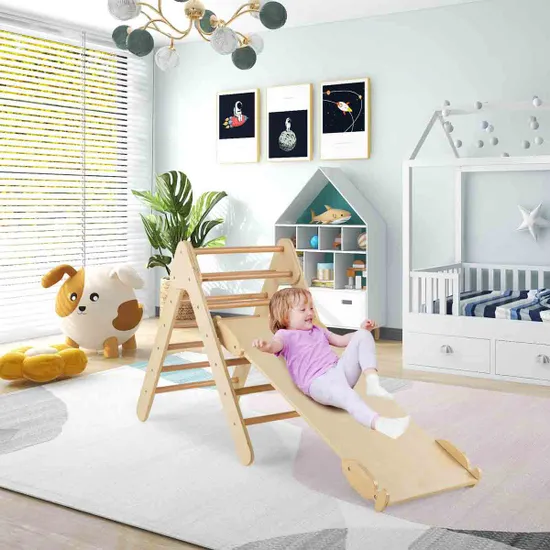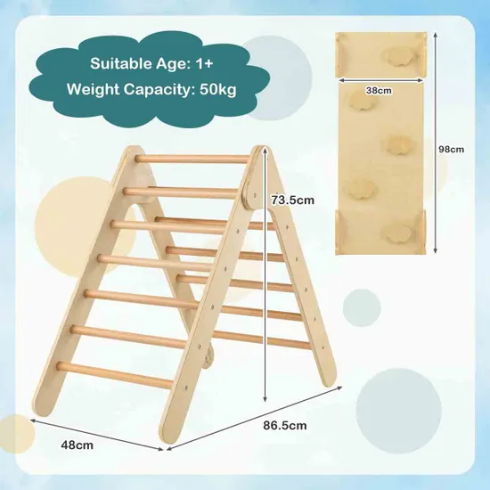 Σετ Αναρρίχησης Τριγώνου 2 σε 1 από Φυσικό Ξύλο με Αναστρέψινη Ράμπα