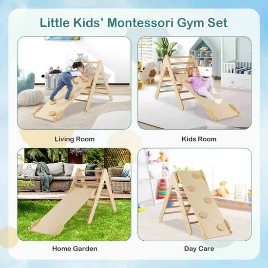 Δημιουργήστε την παιδική χαρά του παιδιού σας στο σπίτι με το Σετ Αναρρίχησης Τριγώνου 2 σε 1 από Φυσικό Ξύλο με Αναστρέψινη Ράμπα της Costway. Η ξύλινη αυτή σκάλα αναρρίχησης είναι ειδικά σχεδιασμένη με βυθισμένες βίδες, λεία επιφάνεια χωρίς γρέζια και στρογγυλεμένες γωνίες για απόλυτη ασφάλεια. Κατασκευασμένη από ξύλο οξιάς και σημύδας χωρίς BPA, προσφέρει ένα ασφαλές και υγιές περιβάλλον παιχνιδιού για τα παιδιά.