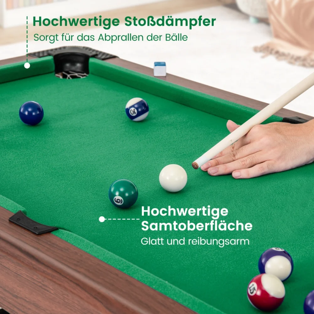 - Πλήρες Σετ Αξεσουάρ: Περιλαμβάνει μπιλιάρδο, 2 στέκες, 2 κιμωλίες, βούρτσα, τρίγωνο και 15 χρωματιστές μπάλες με μία λευκή. Συγκεντρώστε την οικογένεια ή τους φίλους σας και απολαύστε ένα διασκεδαστικό παιχνίδι μπιλιάρδου.