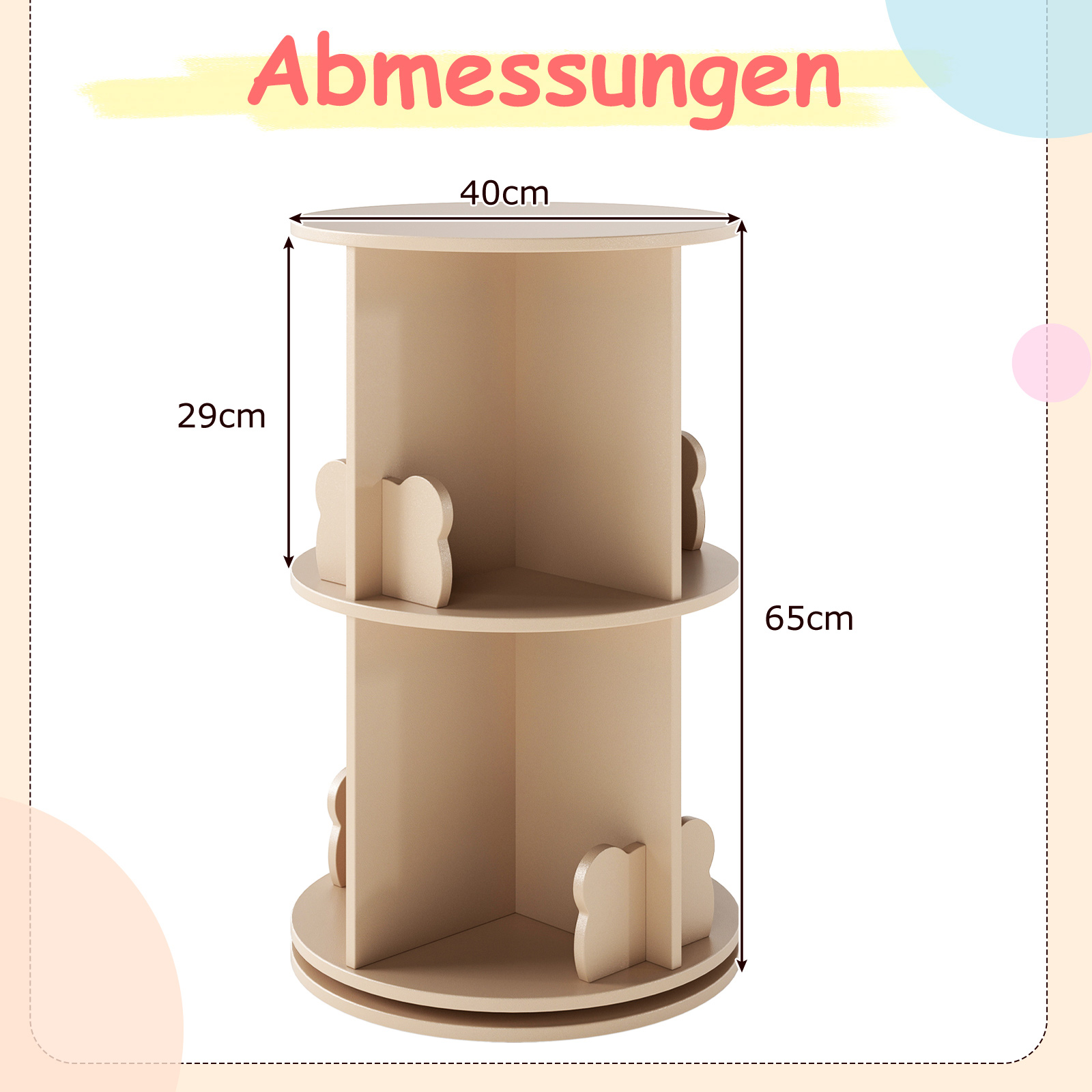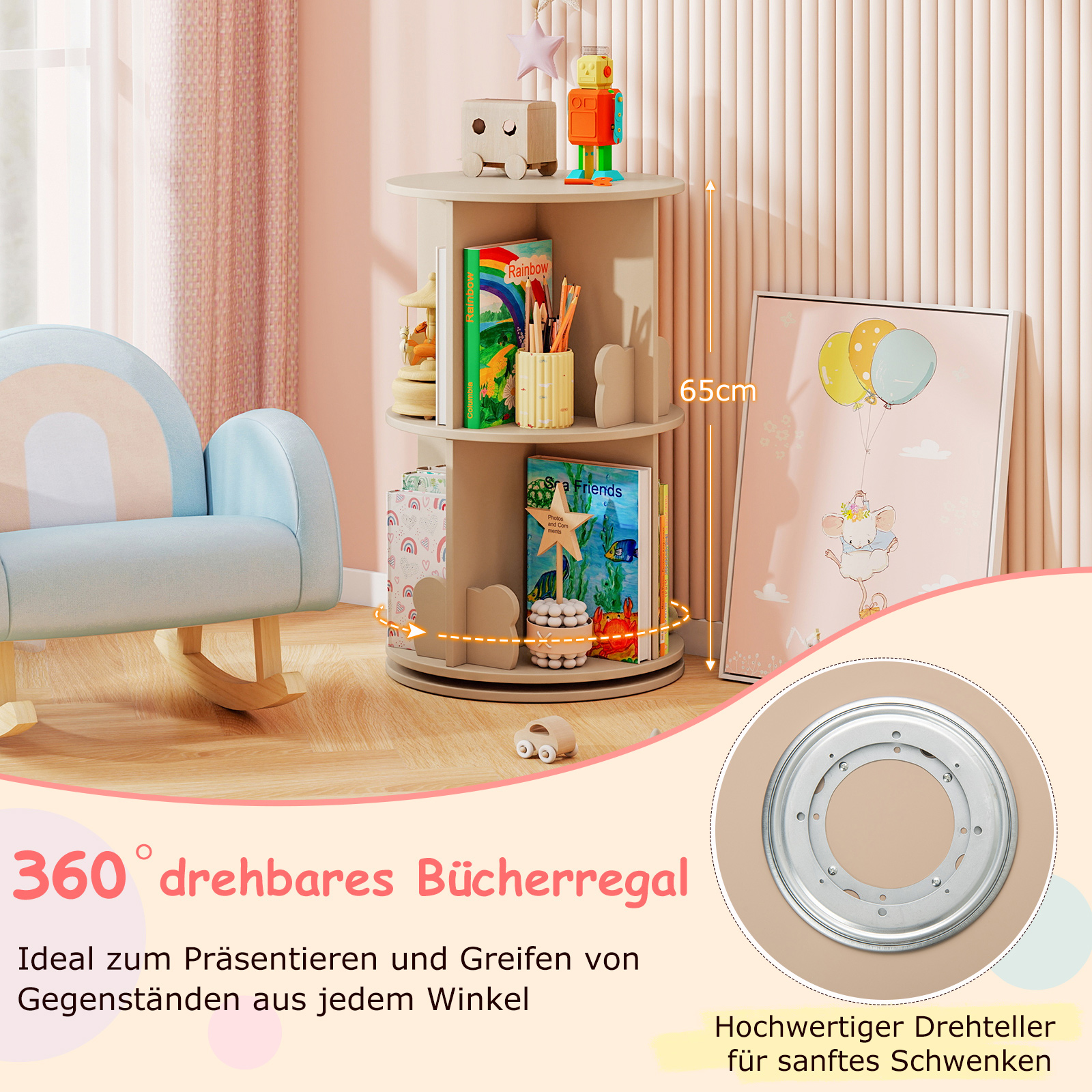 Costway Παιδική Περιστρεφόμενη Βιβλιοθήκη με 2 Επίπεδα & Χωρίσματα-Λαγουδάκια 360° 40 x 40 x 65cm Καφέ TP10363NA