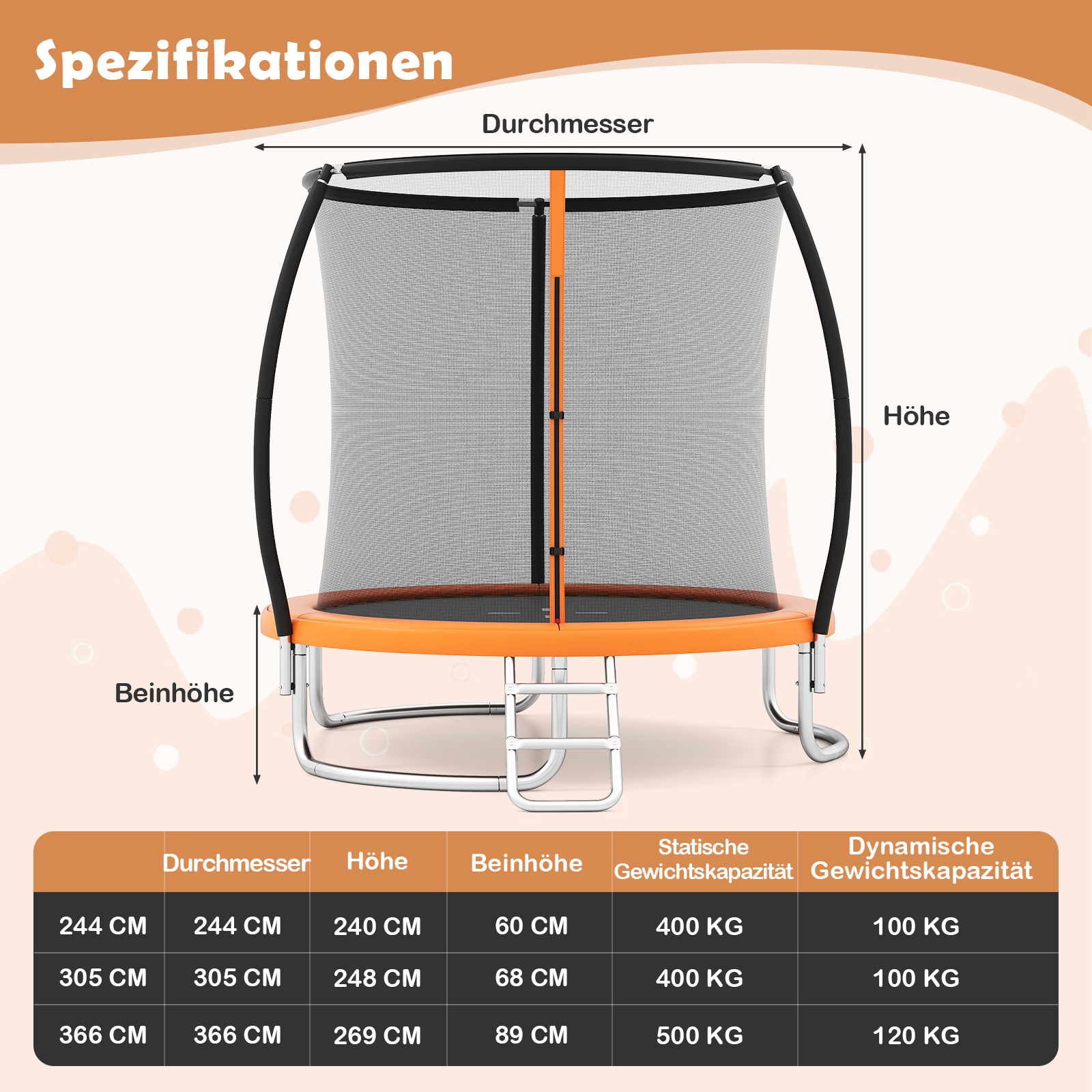 Costway Εξωτερικό Τραμπολίνο με Σκάλα & Προστατευτικό Δίχτυ, Στρογγυλό, Πορτοκαλί, Διάμετρος 305cm TW10141OR+