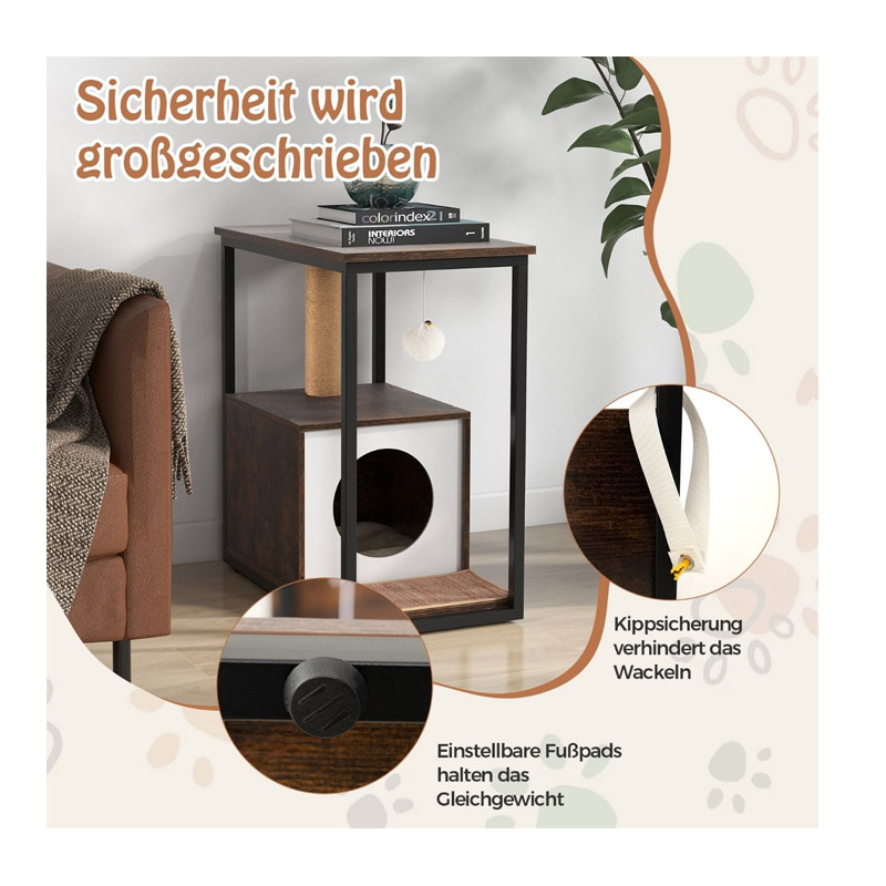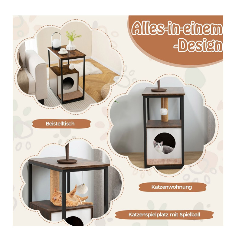 Ο συνδυασμός σπιτιού γάτας και βοηθητικού τραπεζιού, μπορεί να χρησιμεύσει ως πρακτικό βοηθητικό τραπέζι ή κομοδίνο, παρέχοντας χώρο για τα βιβλία, τους φορητούς υπολογιστές και άλλα αντικείμενα στο σαλόνι ή την κρεβατοκάμαρά σας.