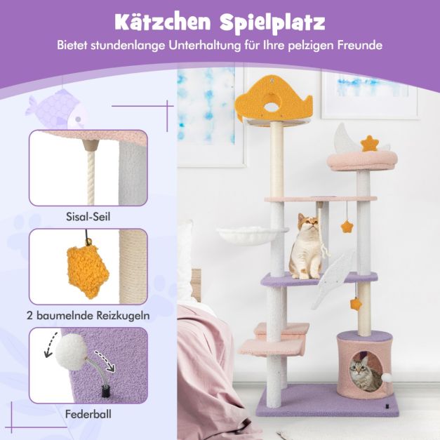 Το Δέντρο Γάτας – Ονυχοδρόμιο από την εταιρεία COSTWAY είναι εξοπλισμένο με μια θέση από βελούδινο ύφασμα, 2 αιώρες και ένα σπιτάκι, προσφέροντας στις γάτες σας διάφορες επιλογές ύπνου.