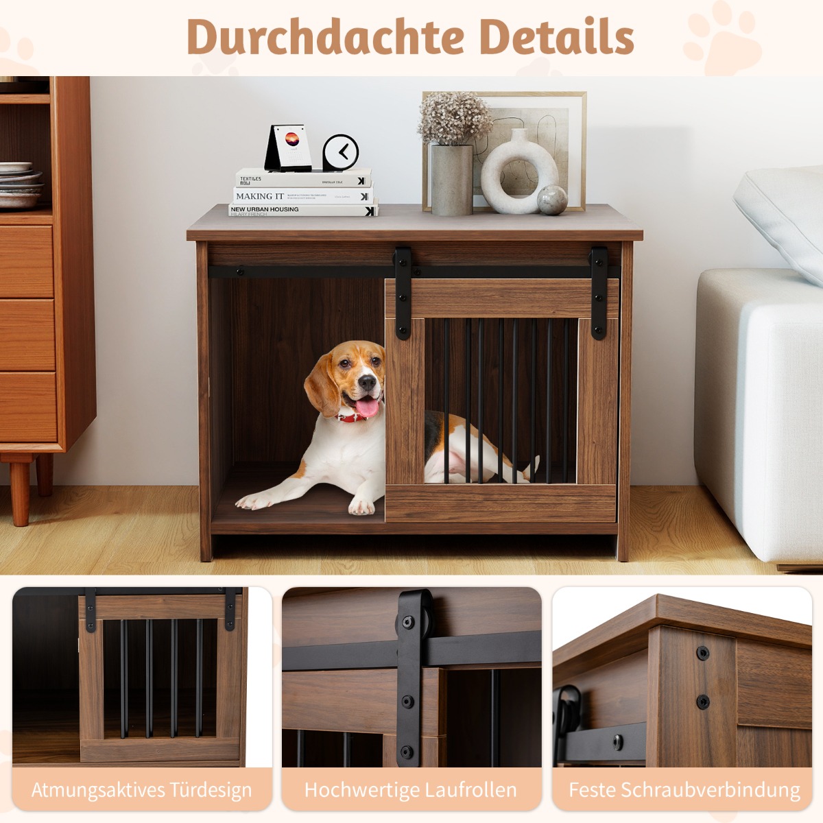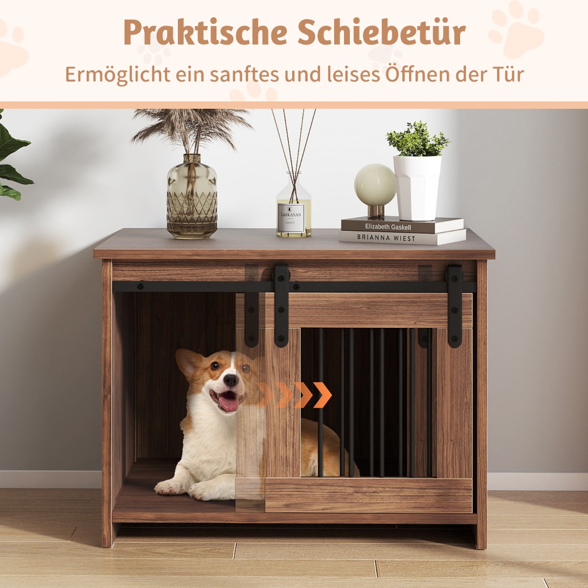 που κρατά τον σκύλο σας ασφαλή. Οι ποιοτικοί οδηγοί εξασφαλίζουν ομαλό και αθόρυβο άνοιγμα, ενώ ο σχεδιασμός με σανίδες επιτρέπει καλό αερισμό. - Ανθεκτική Κατασκευή: Κατασκευασμένος από ενισχυμένες ξύλινες πλάκες και ανθεκτικούς μεταλλικούς σωλήνες, εγγυάται