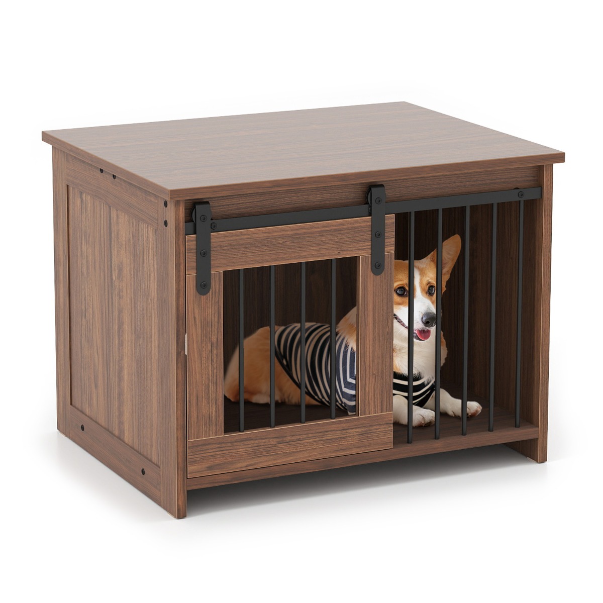 Costway Καφέ Κλουβί Σκύλων από Μέταλλο και Ξύλο με Συρόμενη Πόρτα PU10089BN