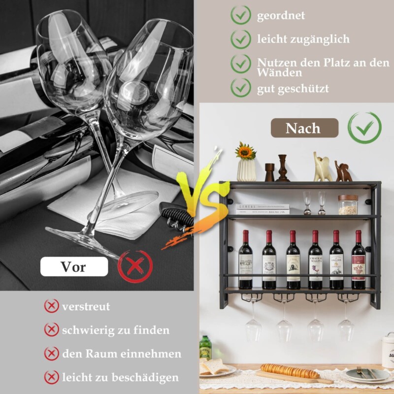 Το κρεμαστό ράφι κρασιού τοίχου μεγιστοποιεί τον τοίχο χωρίς να επηρεάζει το δάπεδο, καθιστώντας το ιδανικό για κάθε χώρο του σπιτιού, όπως το σαλόνι, την τραπεζαρία ή την κουζίνα.