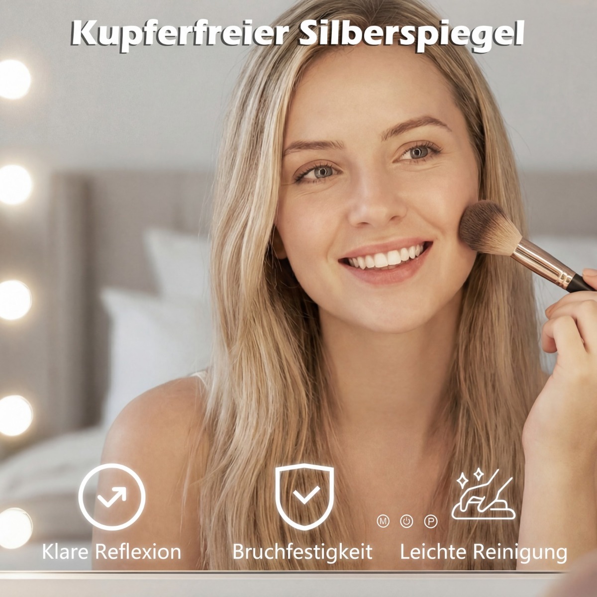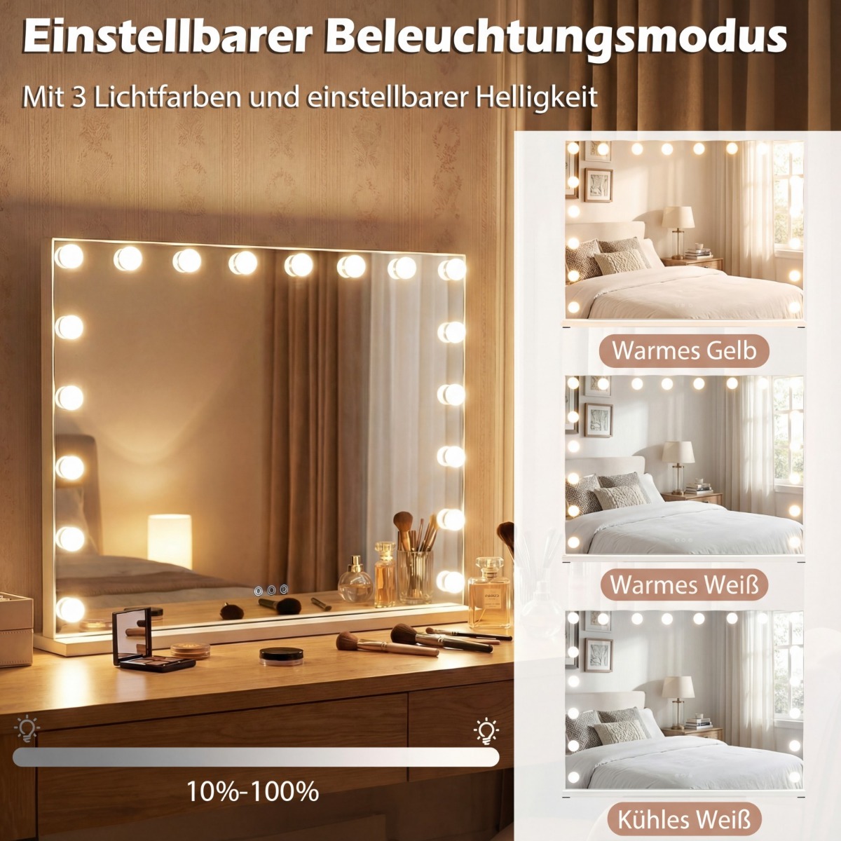 Απολαύστε ένα μοναδικό εμπειρία μακιγιάζ με τον καθρέπτη μακιγιάζ που διαθέτει 3 λαμπερές επιλογές φωτισμού: φυσικό φως, ζεστή λάμψη και ψυχρούς τόνους. Ρυθμίστε την ένταση του φωτισμού από 10% έως 100% για τέλειο αποτέλεσμα κάθε φορά.