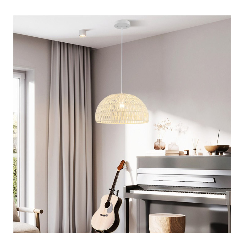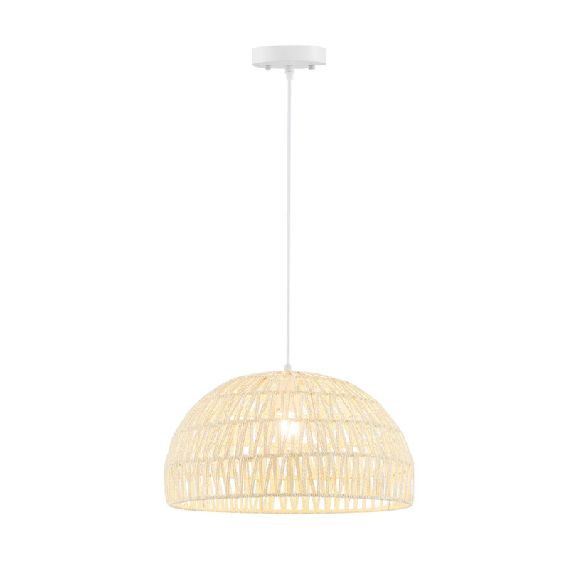 Το φωτιστικό οροφής, από την εταιρία Costway, διαθέτει αμπαζούρ με στιβαρούς μεταλλικούς δακτυλίους τυλιγμένο με καλά πλεγμένα χάρτινα σχοινιά, χαρακτηριστικό που κάνει ολόκληρο το φωτιστικό κομψό και ελκυστικό. Το ρυθμιζόμενο σχοινί ανάρτησης από 0.3 m έως 1.5 m καλύπτει διαφορετικές ανάγκες. Λειτουργεί με τους περισσότερους τύπους λαμπτήρων E27 και η βάση έχει σχεδιαστεί για μέγιστη ισχύ 40 W.