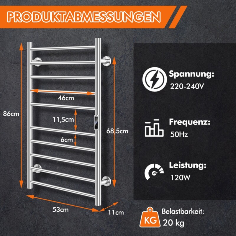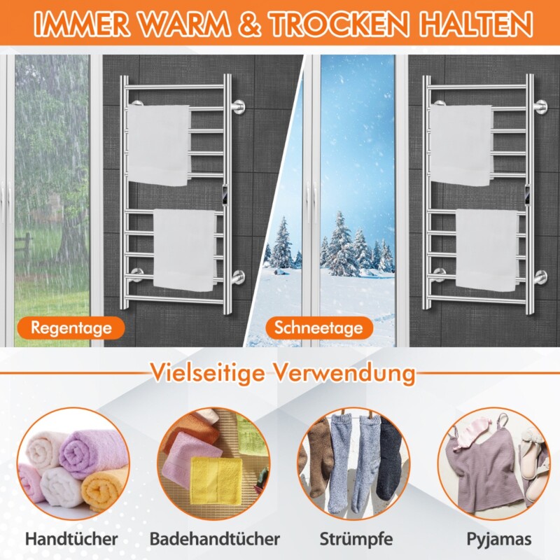 • Πάντα Ζεστά & Στεγνά: Με 10 ράβδους, διανέμει τη θερμότητα ομοιόμορφα, προσφέροντας άφθονο χώρο για ζέσταμα και στέγνωμα.
