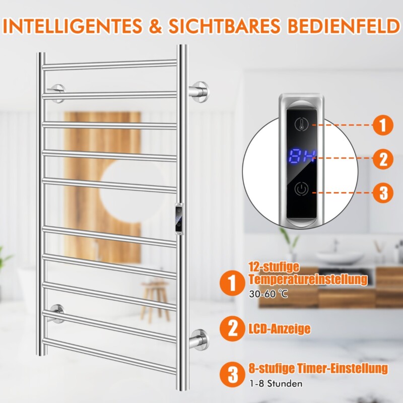 Costway Ηλεκτρική Θερμάστρα Πετσετών με Χρονοδιακόπτη 8 Ωρών & Προστασία Υπερθέρμανσης & Οθόνη LED ES10215DE-SL