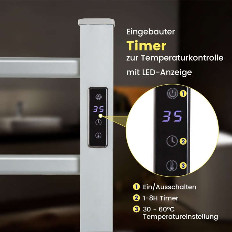 Costway Ηλεκτρική Θερμάστρα Πετσετών με Χρονοδιακόπτη 8 Ωρών & Προστασία Υπερθέρμανσης & LED Οθόνη Αλουμινίου ES10253DE-SL