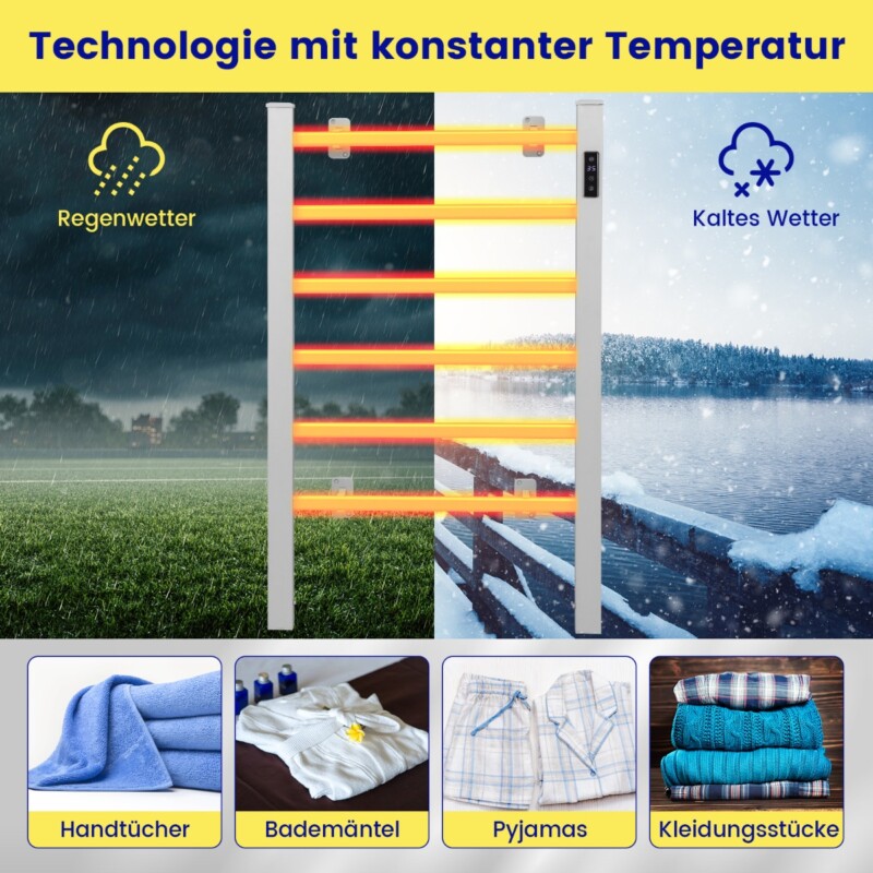 - Ιδανικό για Όλες τις Εποχές: Διατηρήστε τις πετσέτες, τα μπουρνούζια και τα ρούχα σας ζεστά και στεγνά, προσφέροντας πολυτέλεια και υγεία σε κάθε καιρό.