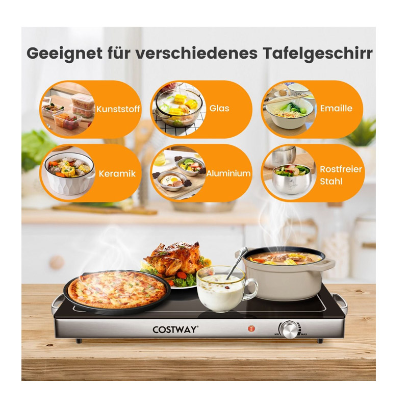 Διατηρήστε το φαγητό σας ζεστό και έτοιμο για κατανάλωση, με τον θερμαινόμενο δίσκο, από την εταιρία Costway. Τροφοδοτείται από θερμαντικό στοιχείο 300 W που διατηρεί το φαγητό ζεστό. Λειτουργεί μέσω ενός ελεγκτή θερμοκρασίας ώστε να μπορείτε να ρυθμίσετε τη θερμοκρασία μεταξύ 50 και 120 °C. Μπορείτε να ρυθμίσετε την επιθυμητή θερμοκρασία για να διατηρείτε το τσάι, τα πιάτα με κρέας, τα αρτοσκευάσματα και τα τηγανητά στην ιδανική θερμοκρασία.
