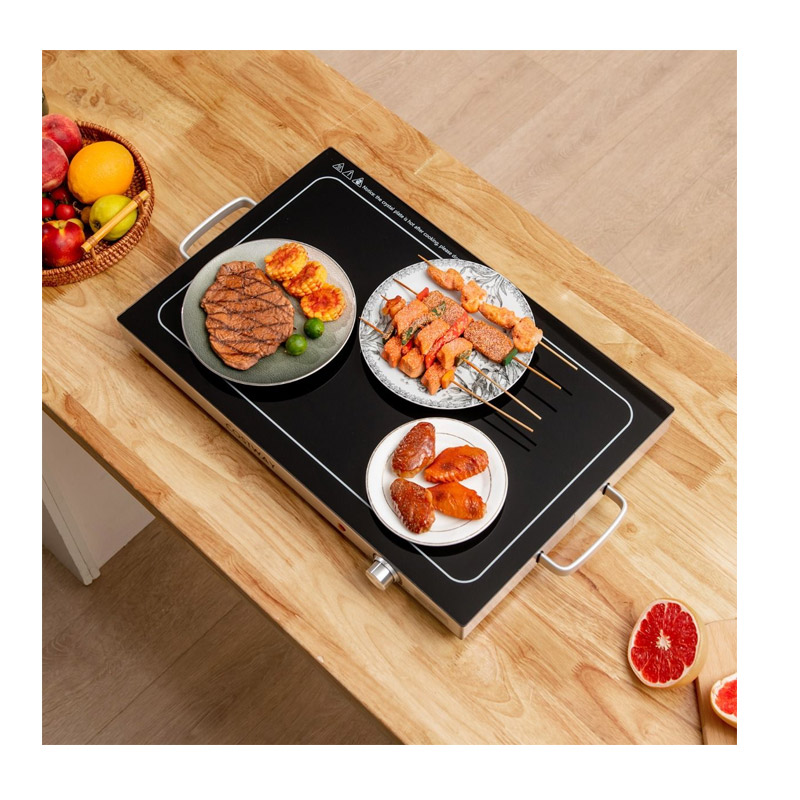Είναι εξοπλισμένος με μη θερμαινόμενες λαβές για εύκολη μεταφορά και αποφυγή εγκαυμάτων. Ο ελαφρύς σχεδιασμός σας επιτρέπει να τον μεταφέρετε εύκολα οπουδήποτε. Επιπλέον, η εξαιρετικά λεπτή σχεδίαση με πάχος μόλις 6.5 cm εξασφαλίζει εύκολη αποθήκευση. Και τα αντιολισθητικά πόδια στο κάτω μέρος εμποδίζουν το τραπέζι σας να γρατσουνιστεί.