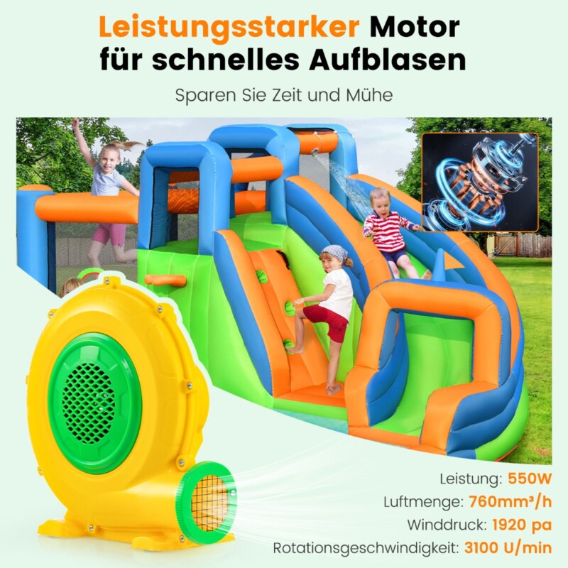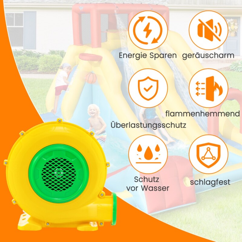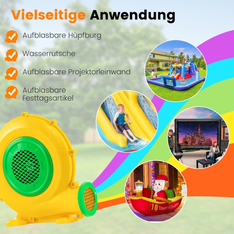 Ο απόλυτος σύμμαχός σας για να δώσετε ζωή σε κάθε γιορτή! Δείτε πώς δίνει ενέργεια σε φουσκωτά κάστρα και τσουλήθρες μέσα σε δευτερόλεπτα, μετατρέποντας τον κήπο σας σε λούνα παρκ. Μεταφέρετε αυτόν τον ελαφρύ ανεμιστήρα παντού χάρη στη βολική λαβή του και απολαύστε την ελευθερία της εύκολης μετακίνησης. Με τους πασσάλους εδάφους που περιλαμβάνονται, μπορείτε να το στερεώσετε με ασφάλεια. Οι προσεγμένες λεπτομέρειες, όπως το ανθεκτικό περίβλημα PP, ο διακόπτης ασφαλείας και ο αεραγωγός με κάλυμμα πλέγματος, προσφέρουν επιπλέον ασφάλεια. Είναι επίσης πολύ εύκολο να χρησιμοποιήσετε αυτόν τον ανεμιστήρα για να φουσκώσετε τα φουσκωτά σας αντικείμενα! Απλά συνδέστε το με τα φουσκωτά αντικείμενα και συνδέστε το στην πρίζα. Ο ενεργειακά αποδοτικός, αθόρυβος σύντροφος για τις φουσκωτές σας γιορτές είναι εδώ και επαναστατεί στον τρόπο που στήνετε τα προϊόντα σας!