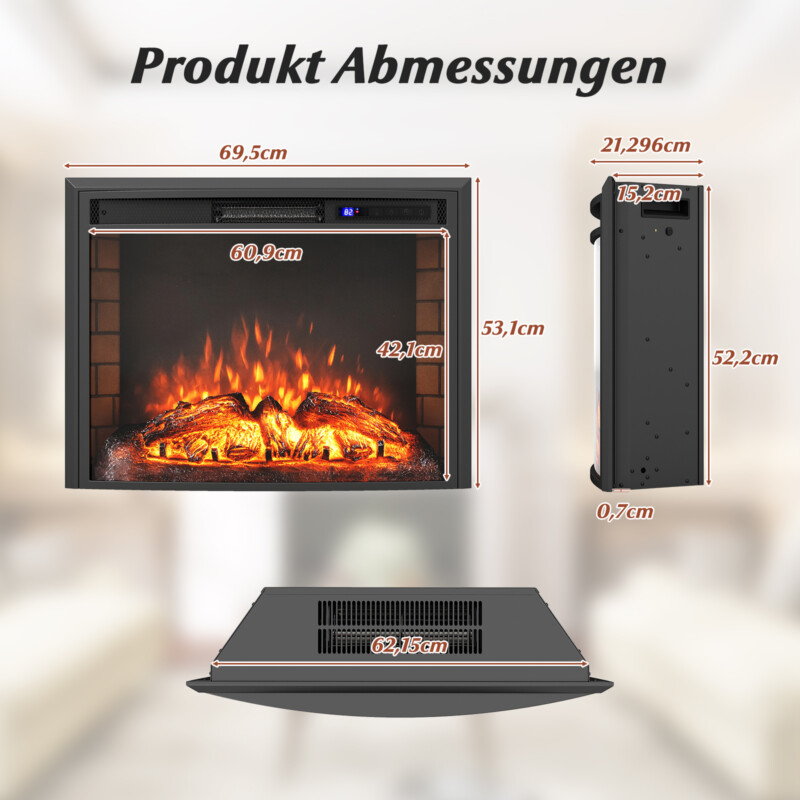 Costway Ηλεκτρικό Τζάκι 1500W με Θέρμανση και Τηλεχειριστήριο και Προστασία Υπερθέρμανσης για Εντοιχισμό FP11000DE-26