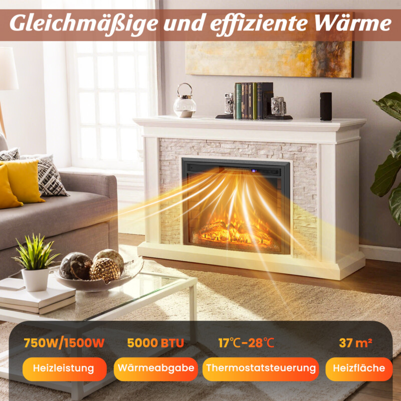 Εκτός από οπτική απόλαυση, αυτό το ένθετο τζάκι αποτελεί μια αποδοτική επιλογή για θέρμανση χώρων έως 37 τ.μ. με ρυθμίσεις 750W/1500W και θερμοκρασιακό έλεγχο από 62℉ έως 82℉.