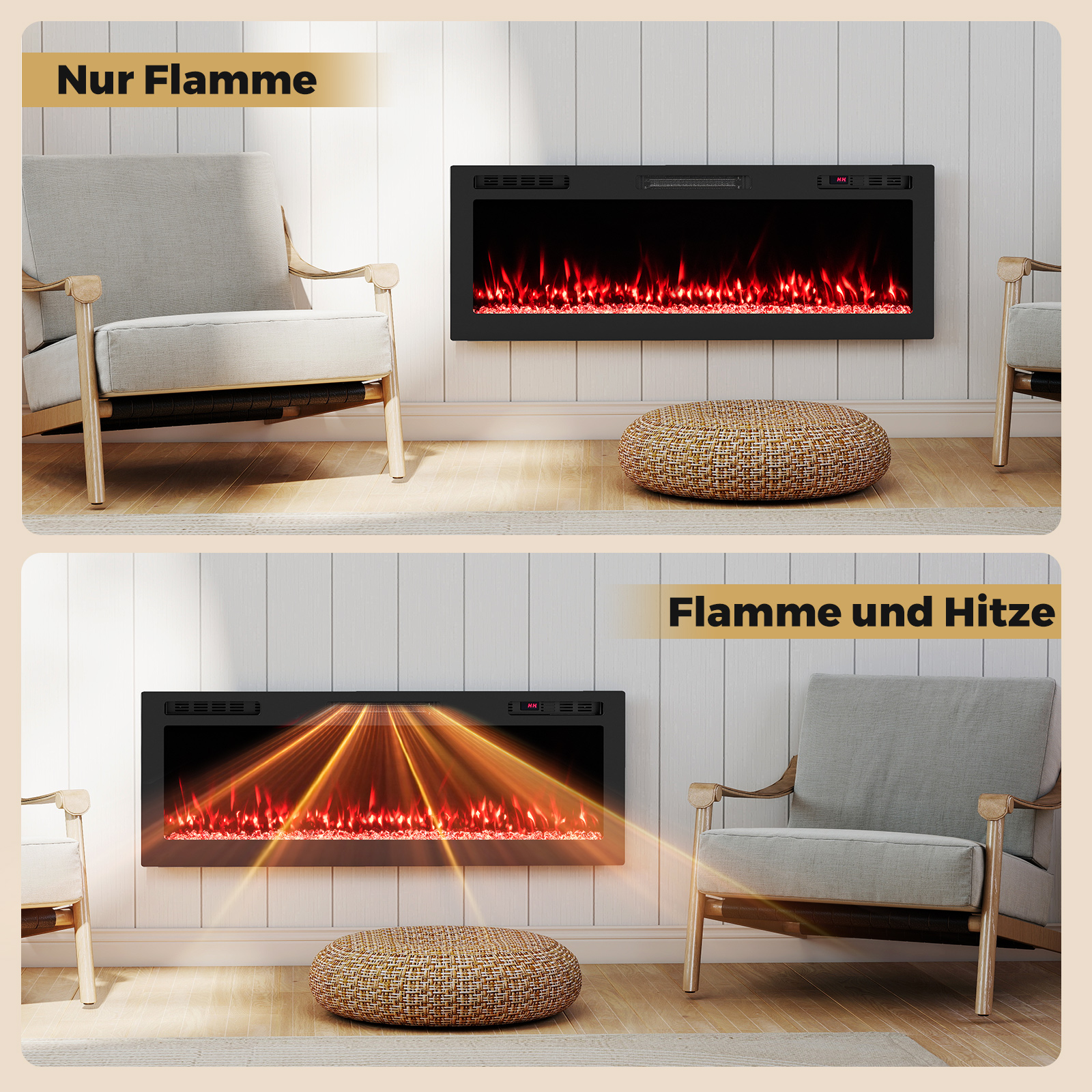 - Ισχυρή και Αποδοτική Θέρμανση: Με απόδοση 5100 BTU, αυτό το τζάκι τοίχου θερμαίνει άνετα χώρους έως 37 m². Μπορείτε να επιλέξετε από ήπια θέρμανση με 750W ή ισχυρότερη θέρμανση με 1500W, ανάλογα με τις ανάγκες σας.