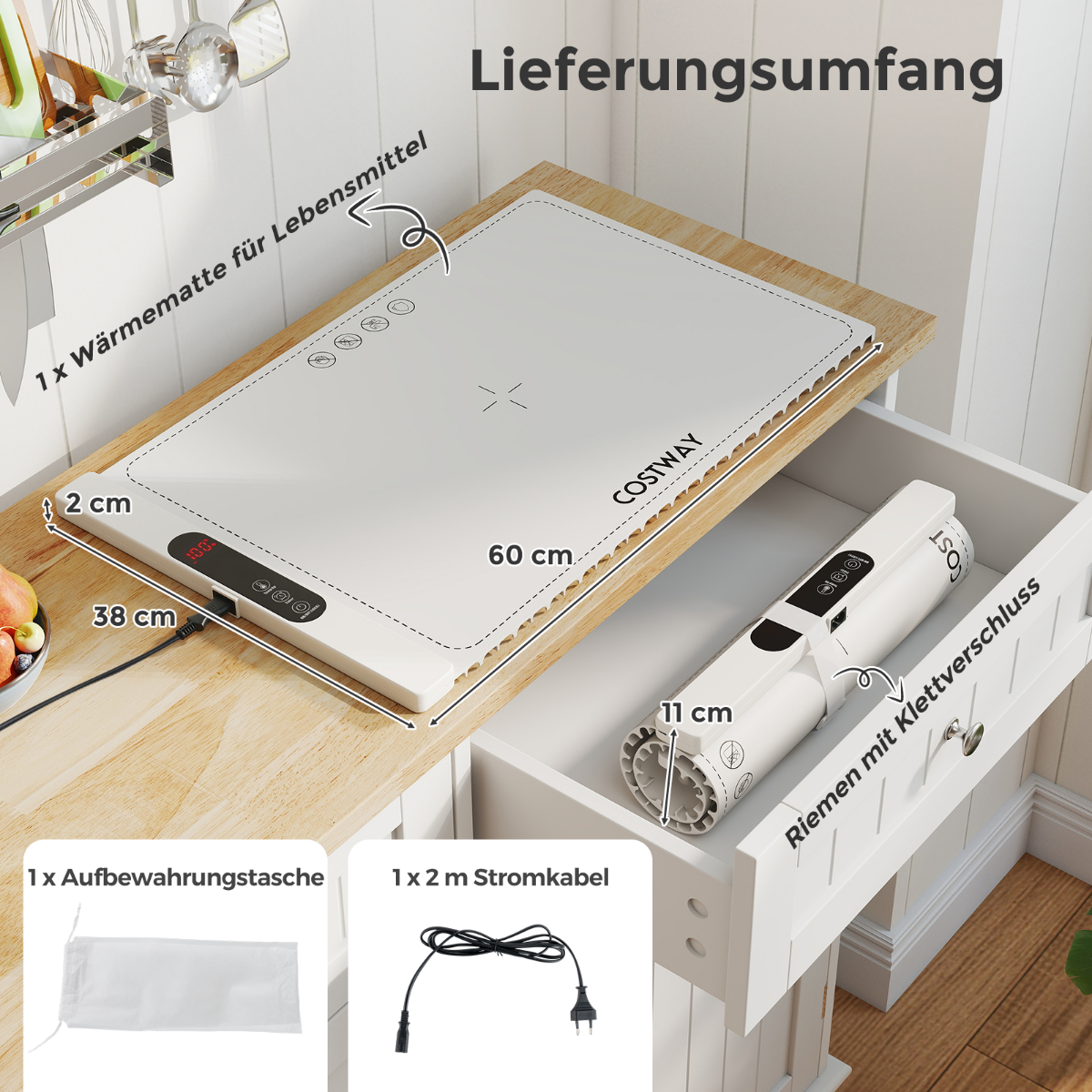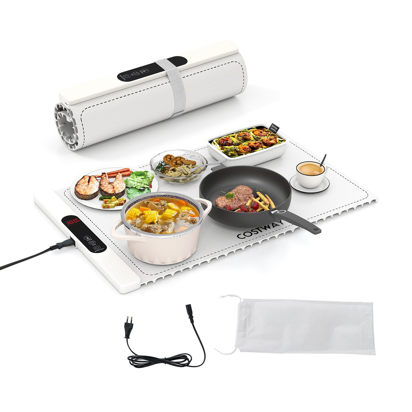 Costway Κυλιόμενη Σιλικονούχα Ηλεκτρική Θερμαινόμενη Πλάκα Τροφίμων με 6 Επιλογές Θερμοκρασίας (50℃-100℃) – Λευκή ES10520DE-WH