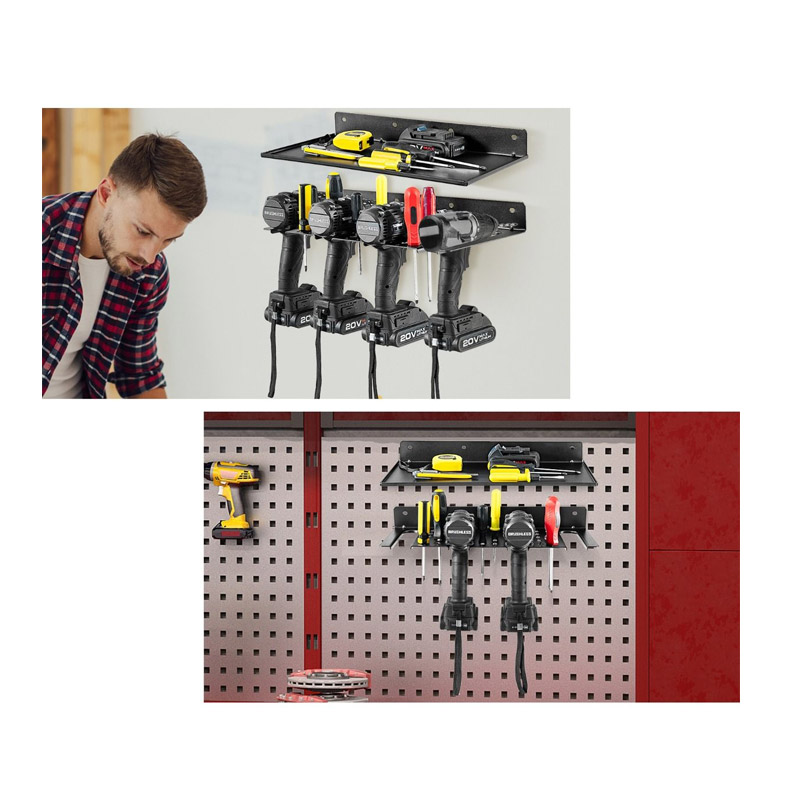 Κάθε ράφι διαθέτει 4 προ-διάτρητες τρύπες, ώστε να μπορεί να στερεωθεί σε διάφορους τοίχους. Το ένα ράφι έχει επίπεδη επιφάνεια με ανυψωμένες άκρες που εμποδίζουν την πτώση των εργαλείων, ενώ το δεύτερο έχει 4 βάσεις για τρυπάνια και 36 τρύπες για κατσαβίδια ή κεφαλές τρυπανιού.