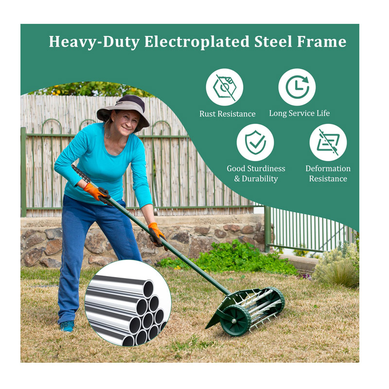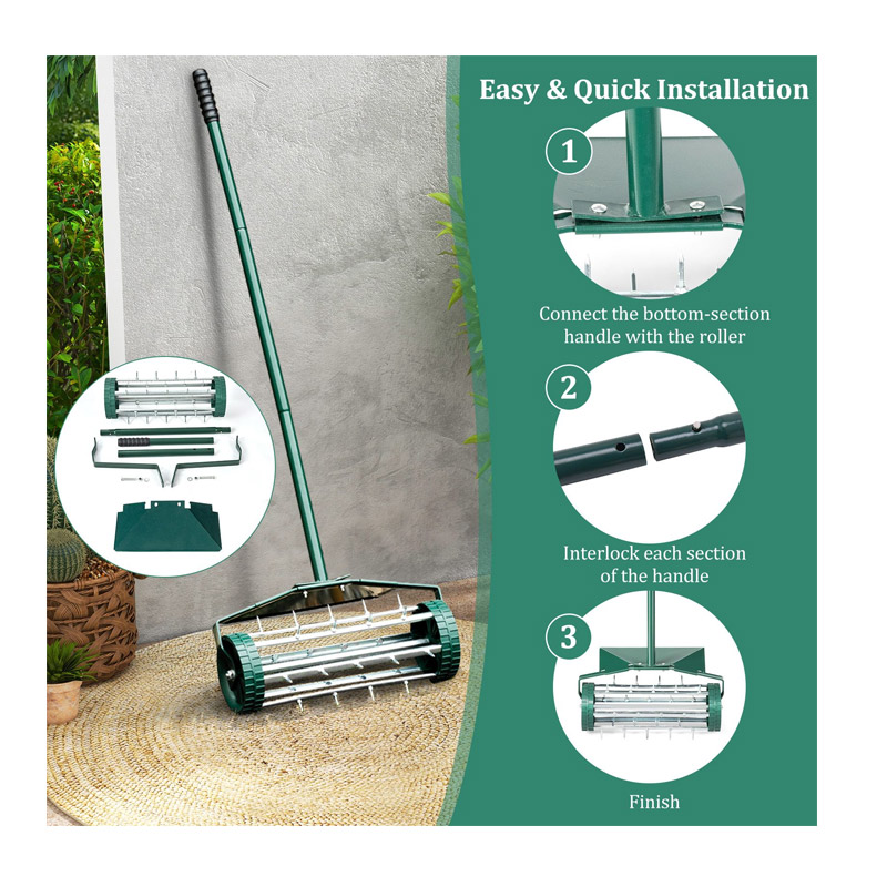 Εάν το γρασίδι σας αρχίσει να κιτρινίζει ή δεν μπορεί πλέον να αναπτυχθεί καλά, ο εξαερωτήρας από την εταιρία Costway, μπορεί να είναι μια καλή επιλογή για να δώσετε νέα πνοή στο γρασίδι σας. Με τον εξαερωτήρα, το γρασίδι σας θα γίνει δυνατό και υγιές, δίνοντάς του την επαγγελματικά διατηρημένη εμφάνιση που θέλατε. Με ακίδες μήκους 3 cm, θα σκάψει το γρασίδι σας βαθύτερα. Το χώμα χαλαρώνει και το νερό, το οξυγόνο και τα θρεπτικά συστατικά μπορούν να διαχέονται πιο εύκολα στους πόρους του εδάφους. Με την πάροδο του χρόνου, το γρασίδι και τα φυτά θα αναπτυχθούν πιο γρήγορα και καλύτερα.