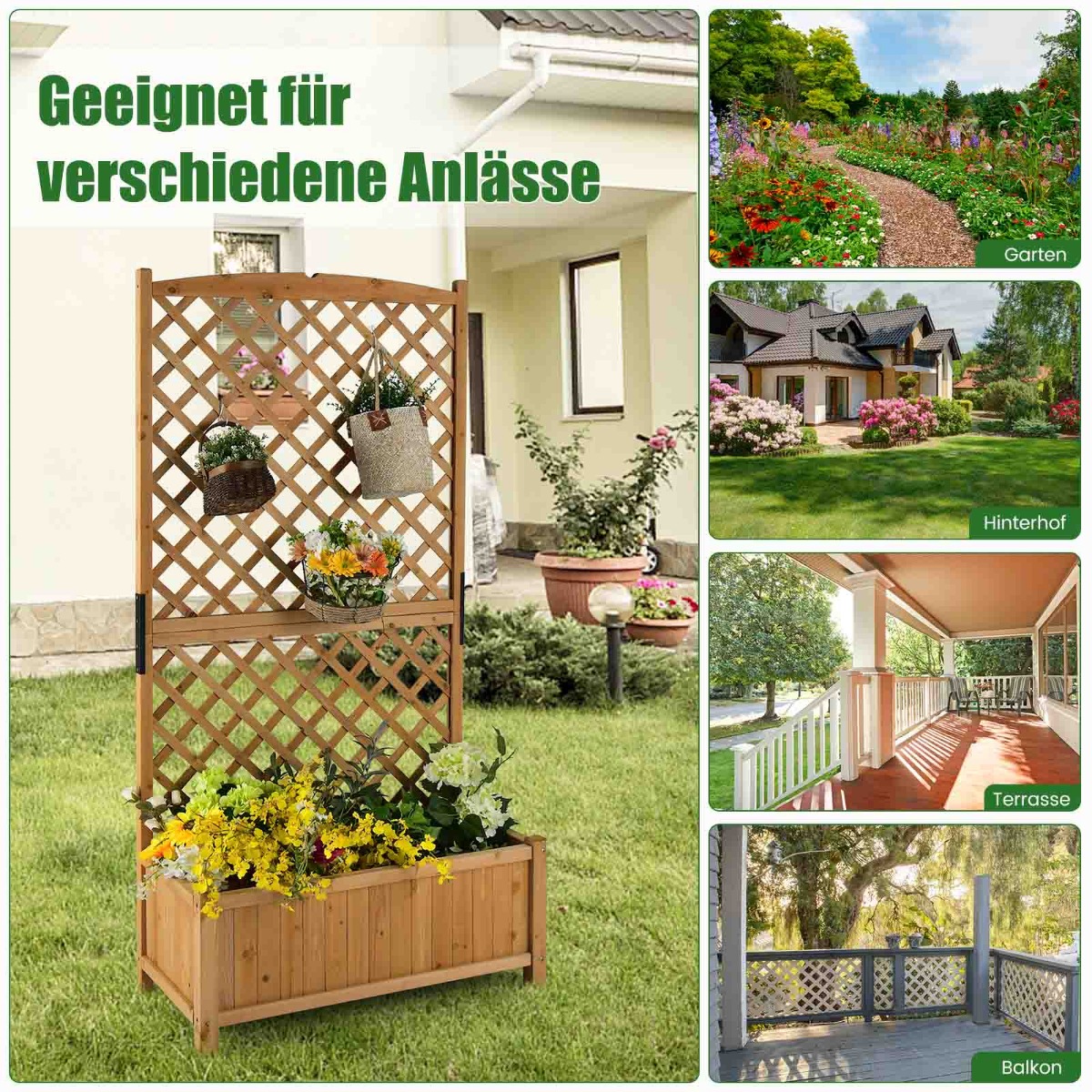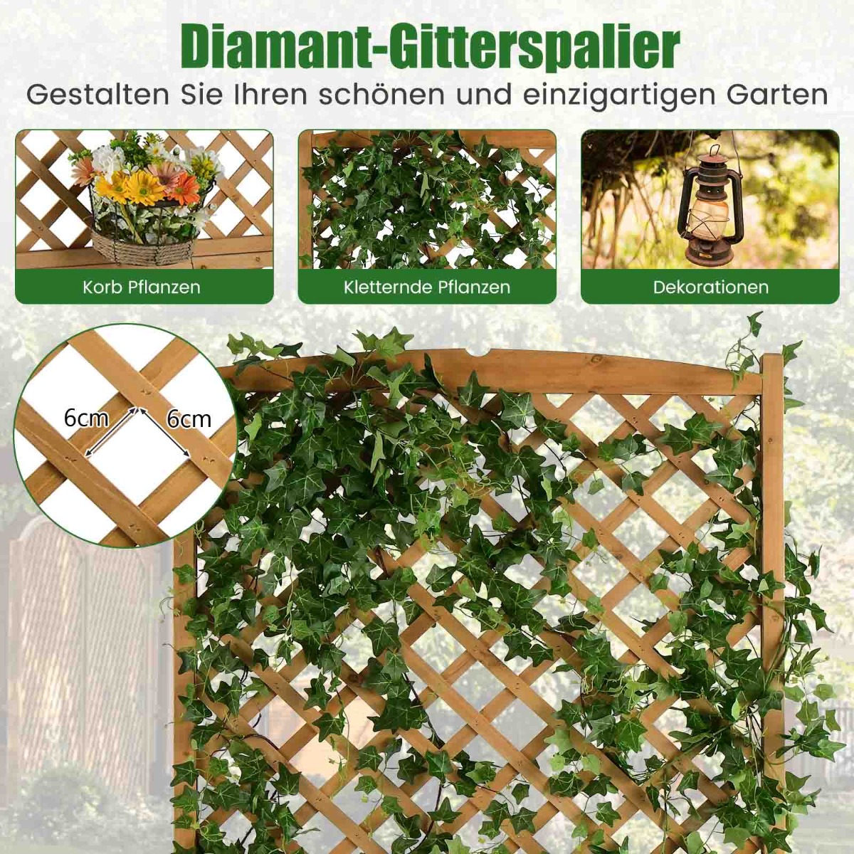 - Πλέγμα με σχέδιο διαμαντιού: Ο εξωτερικός φυτευτής από ξύλο διαθέτει ψηλό πλέγμα, προσφέροντας άφθονο χώρο για την καλλιέργεια αναρριχώμενων φυτών, καθώς και για την ανάρτηση καλαθιών και διακοσμητικών. Είναι κατάλληλο για κισσό, αναρριχώμενα φυτά, αμπέλια, γλυτσίνια και άλλα. Το σχέδιο πλέγματος με διαμάντια προσδίδει οπτική γοητεία.