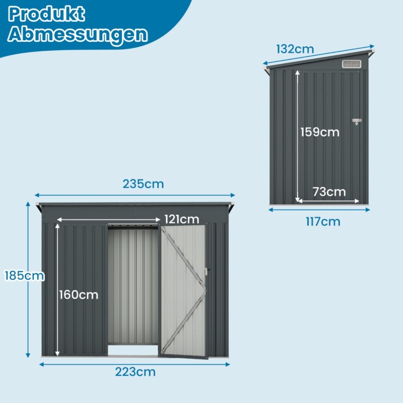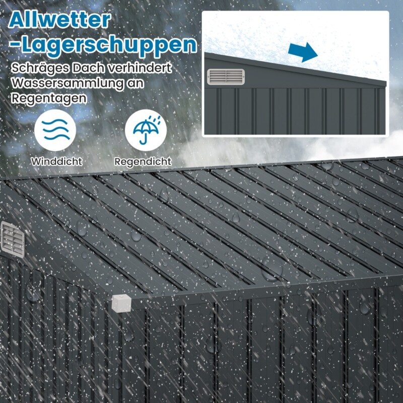 Costway Μεταλλική Αποθήκη Κήπου με Μπροστινή & Πλαϊνή Πόρτα & Στέγη Εργαλειοθήκη Σπιτάκι Εργαλείων GT4276GR+