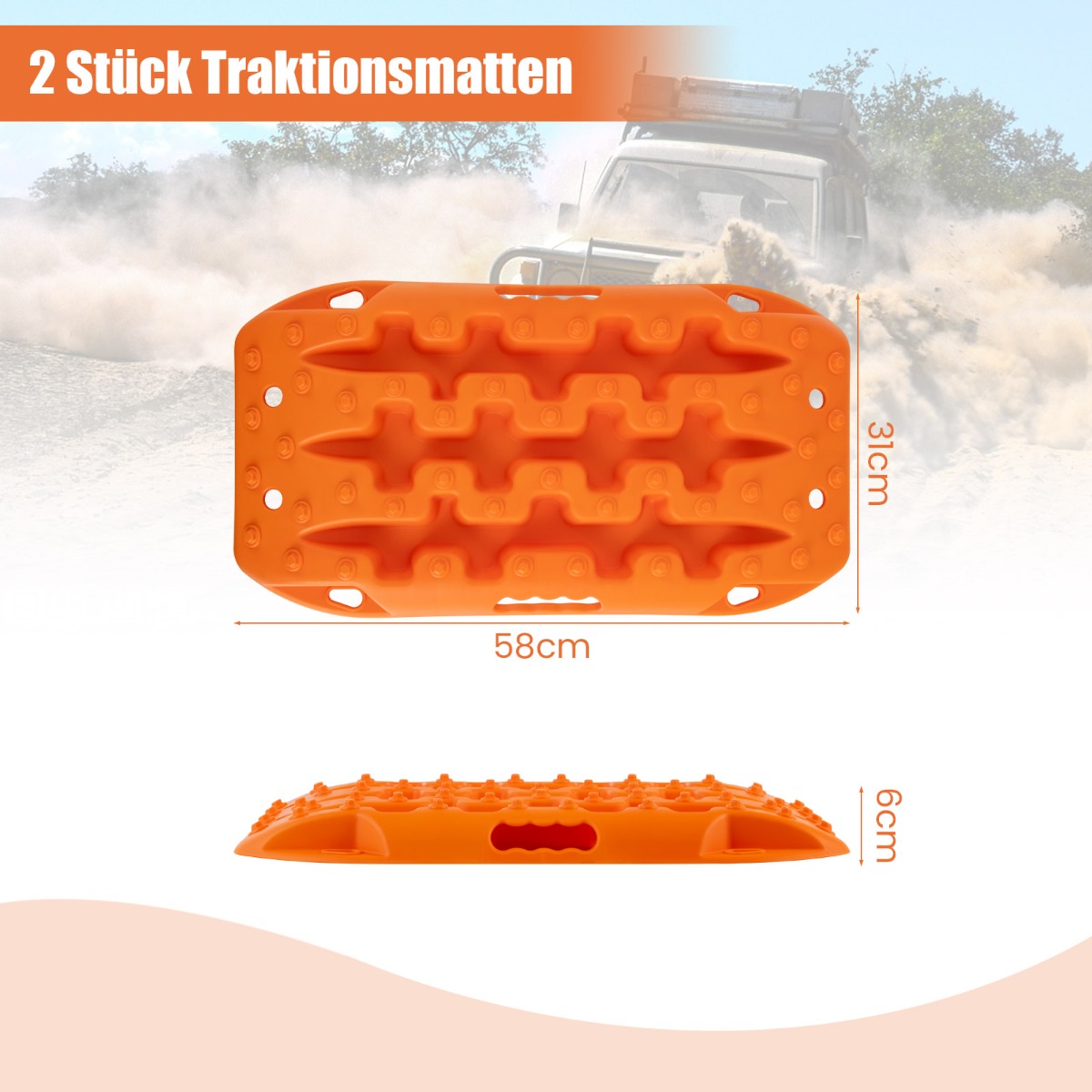 Το πακέτο περιλαμβάνει 2 σανίδες πρόσφυσης εκτός δρόμου. Κάθε σανίδα ανάκτησης είναι κατασκευασμένη από ανθεκτικό αλλά ελαφρύ νάιλον υλικό και μπορεί να αντέξει έως και 10 τόνους, αντέχοντας σε ακραίες θερμοκρασίες από -30 °C έως 60 °C. Αυτή η ανθεκτική σανίδα πρόσφυσης είναι επίσης εξαιρετικά ευέλικτη, εύκαμπτη και δεν σπάει εύκολα. Και οι δύο πλευρές της σκάλας ελαστικών είναι εξοπλισμένες με καρφιά και δόντια για να αυξάνουν την τριβή μεταξύ των ελαστικών και του εδάφους, αποτρέποντας την ολίσθηση των ελαστικών του οχήματος.