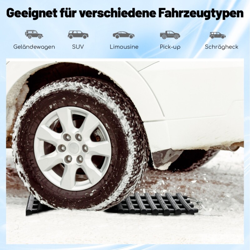 Να είστε προετοιμασμένοι για κάθε πρόκληση εκτός δρόμου με αυτές τις αξιόπιστες και φορητές ταινίες ανάκτησης! Οι τάπητες πρόσφυσης ελαστικών είναι κατασκευασμένοι από ανθεκτικό και υψηλής αντοχής υλικό TPR και μπορούν να αντέξουν τις πιο σκληρές συνθήκες και βαριά φορτία. Το μοναδικό μοτίβο πέλματος αυτών των ταινιών εξασφαλίζει μέγιστη πρόσφυση και σταθερότητα. Επιπλέον, οι ταινίες ανάκτησης είναι συμβατές με αυτοκίνητα και φορτηγά, δίνοντάς σας την αυτοπεποίθηση να κατακτήσετε περιπέτειες εκτός δρόμου. Ο αναδιπλούμενος σχεδιασμός επιτρέπει εύκολη αποθήκευση στο πορτμπαγκάζ του οχήματος, και η παρεχόμενη τσάντα τις κρατά οργανωμένες και προστατευμένες. Είτε αντιμετωπίζετε έντονη χιονόπτωση, λασπώδες έδαφος ή αμμόλοφους, οι ταινίες ανάκτησης ελαστικών προσφέρουν την απαραίτητη πρόσφυση για να προχωρήσετε. Για εύκολη εφαρμογή, τοποθετήστε απλά τις ταινίες μπροστά από τα ελαστικά που χρειάζονται πρόσφυση, πατήστε πάνω τους και αφήστε την πρόσφυση να κάνει τα υπόλοιπα.