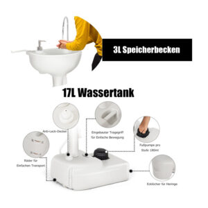 Ο φορητός νιπτήρας κάμπινγκ, από την εταιρία Costway, είναι η ιδανική επιλογή για διάφορες υπαίθριες δραστηριότητες. Είναι κατασκευασμένος από υψηλής ποιότητας υλικό HDPE, το οποίο είναι αρκετά ανθεκτικό και ασφαλές για να υποστηρίζει τη μακροχρόνια χρήση. Εξοπλισμένος με δεξαμενή νερού 17 Lt, χρήσιμος για την επίλυση των προβλημάτων πλυσίματος εξωτερικών χώρων. Ο ενσωματωμένος διανομέας σαπουνιού μπορεί να χωρέσει έως και 2.5-3 Lt υγρού σαπουνιού και κρατά τα χέρια σας καθαρά.