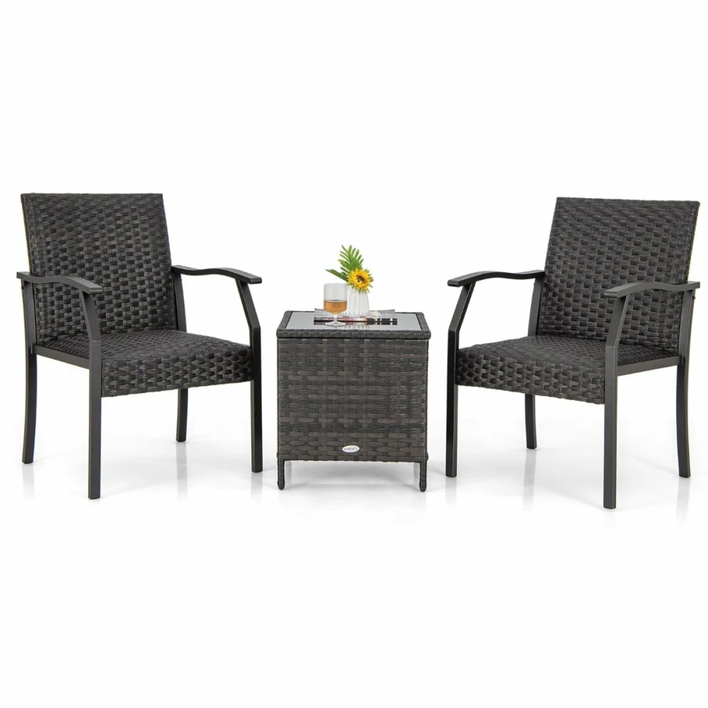 Costway Σετ Βεράντας με Άνετες Καρέκλες και Λειτουργικό Τραπεζάκι Καφέ από PE-Rattan NP11280