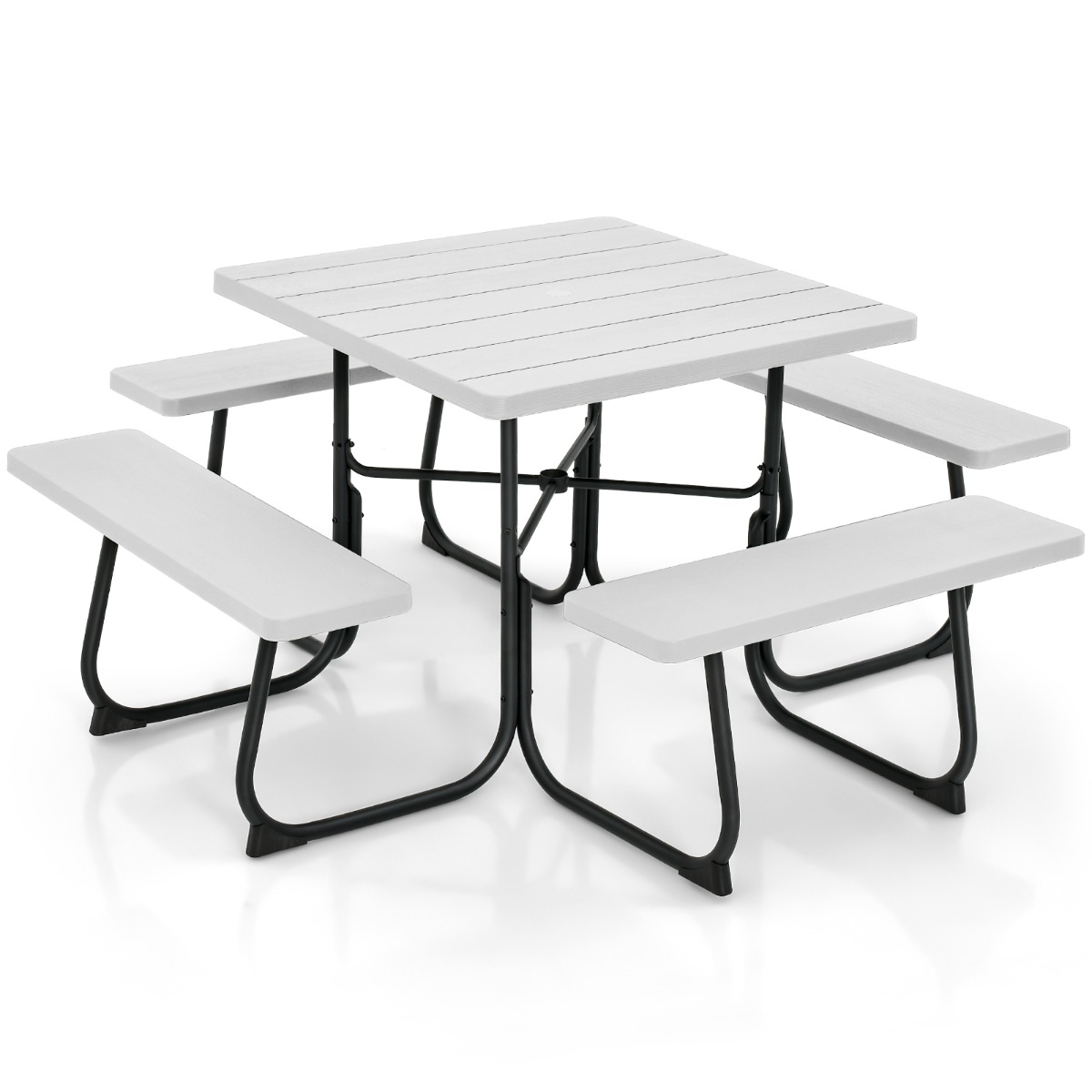 Costway Σετ Πικνίκ 8 Ατόμων με Μεταλλικό Σκελετό και Αδιάβροχη Επιφάνεια HDPE για Εξωτερικούς Χώρους NP11265WH+