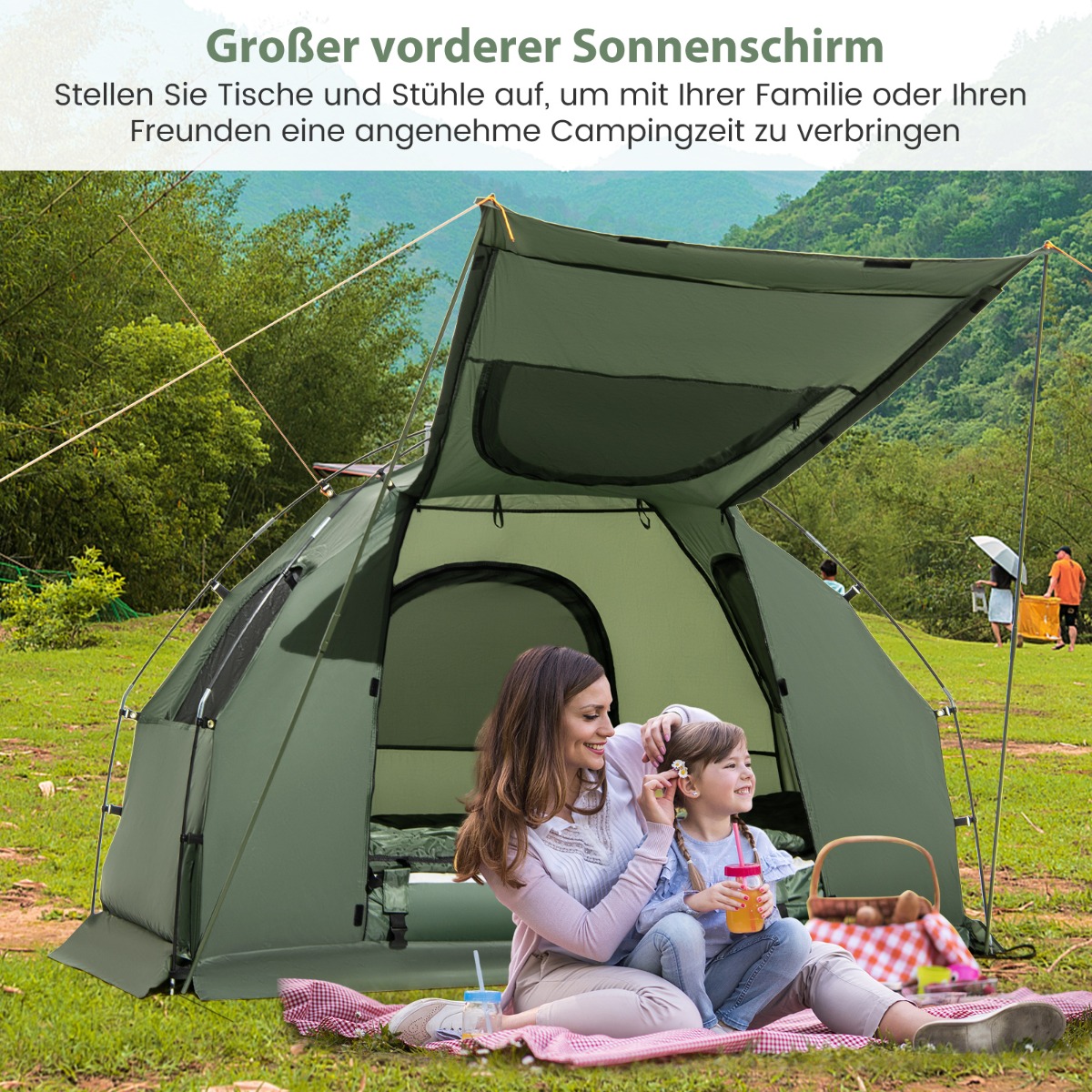 Costway Κρεβάτι κάμπινγκ με προθάλαμο, φουσκωτό στρώμα, υπνόσακο, μαξιλάρι και τσάντα μεταφοράς 194 x 87 x 167 εκ. NP11510
