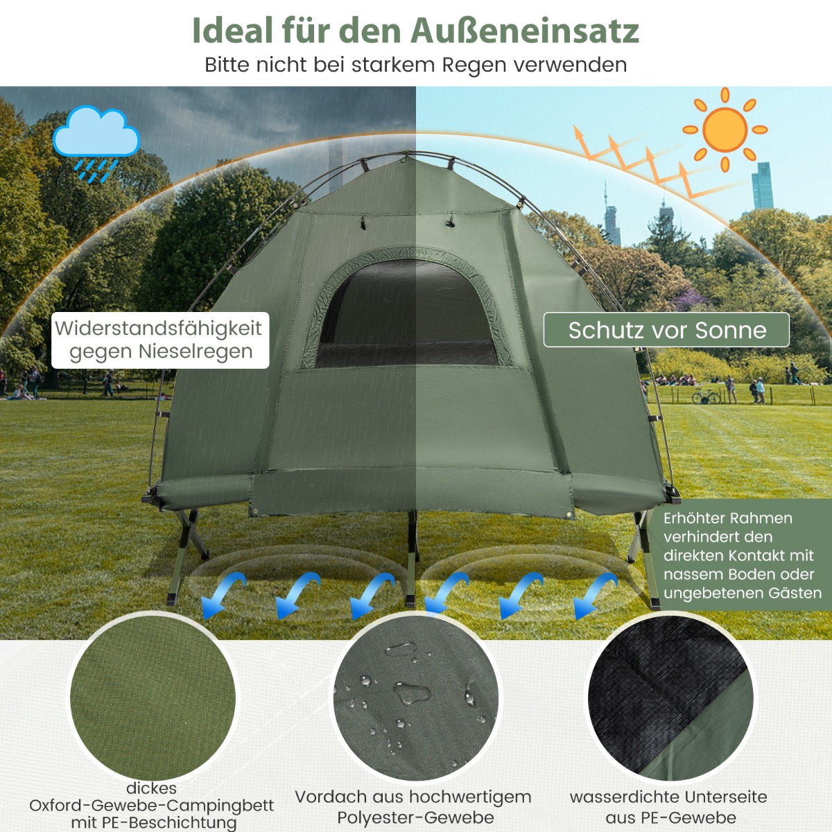 - Κρεβάτι κάμπινγκ από παχύ ύφασμα Oxford με επίστρωση PE, ανθεκτικό στη φθορά