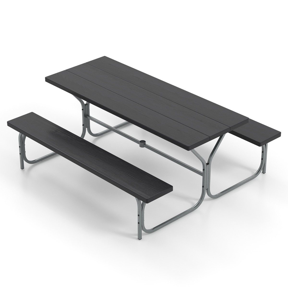 Costway Σετ Πικνίκ Εξωτερικού Χώρου με Ανθεκτική Επιφάνεια HDPE και Ενσωματωμένη Οπή Ομπρέλας NP11266BK+