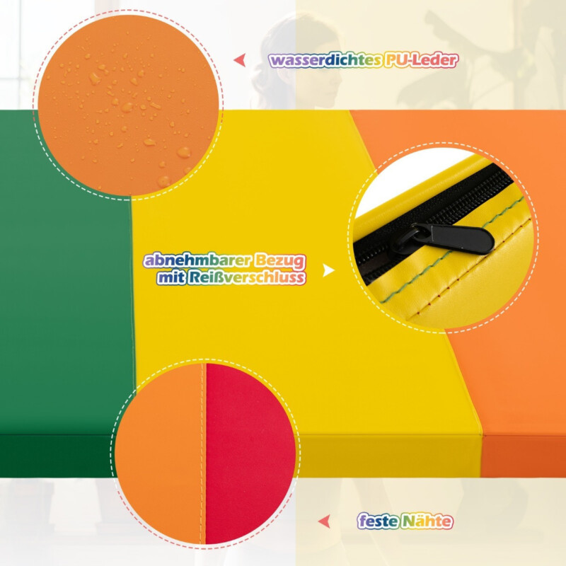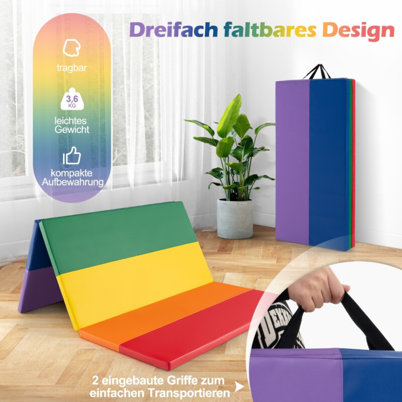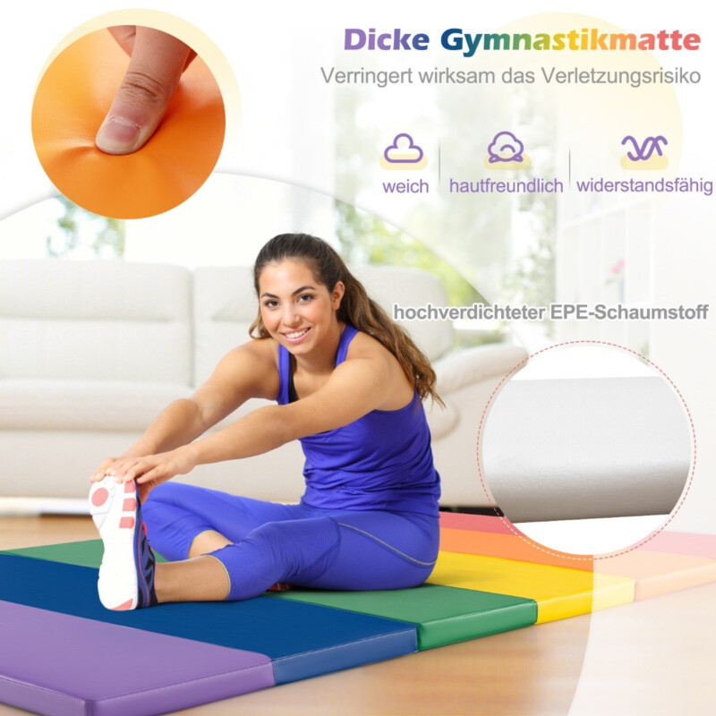 Αυτή η τριπλά αναδιπλούμενη γυμναστική στρώση προσφέρει μια άνετη και ασφαλή επιφάνεια για διάφορες ασκήσεις όπως γιόγκα, γυμναστική, χορό, διατάσεις και μπορεί να χρησιμοποιηθεί ως στρώση παιχνιδιού για παιδιά. Το αφαιρούμενο κάλυμμα με φερμουάρ διευκολύνει τον καθαρισμό.