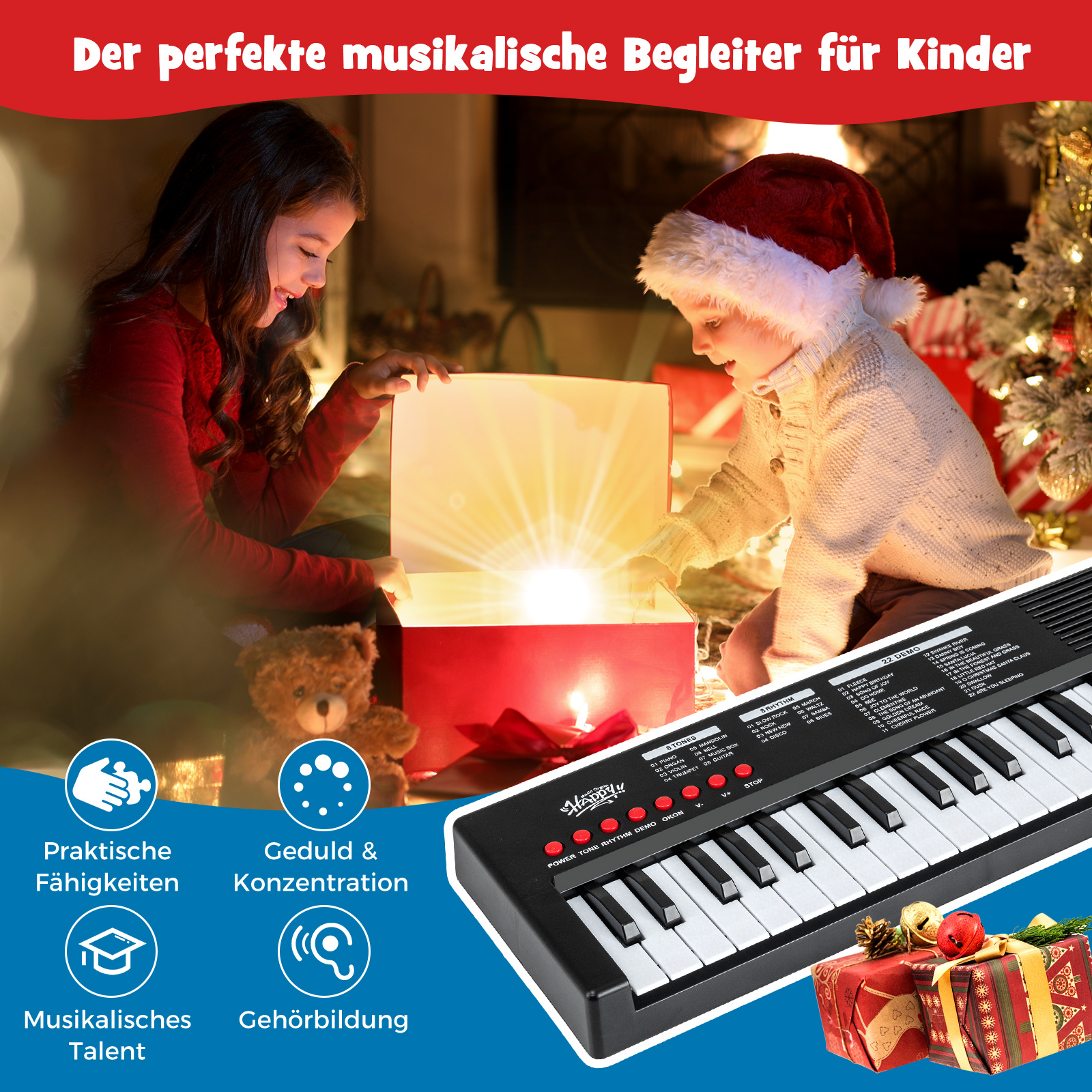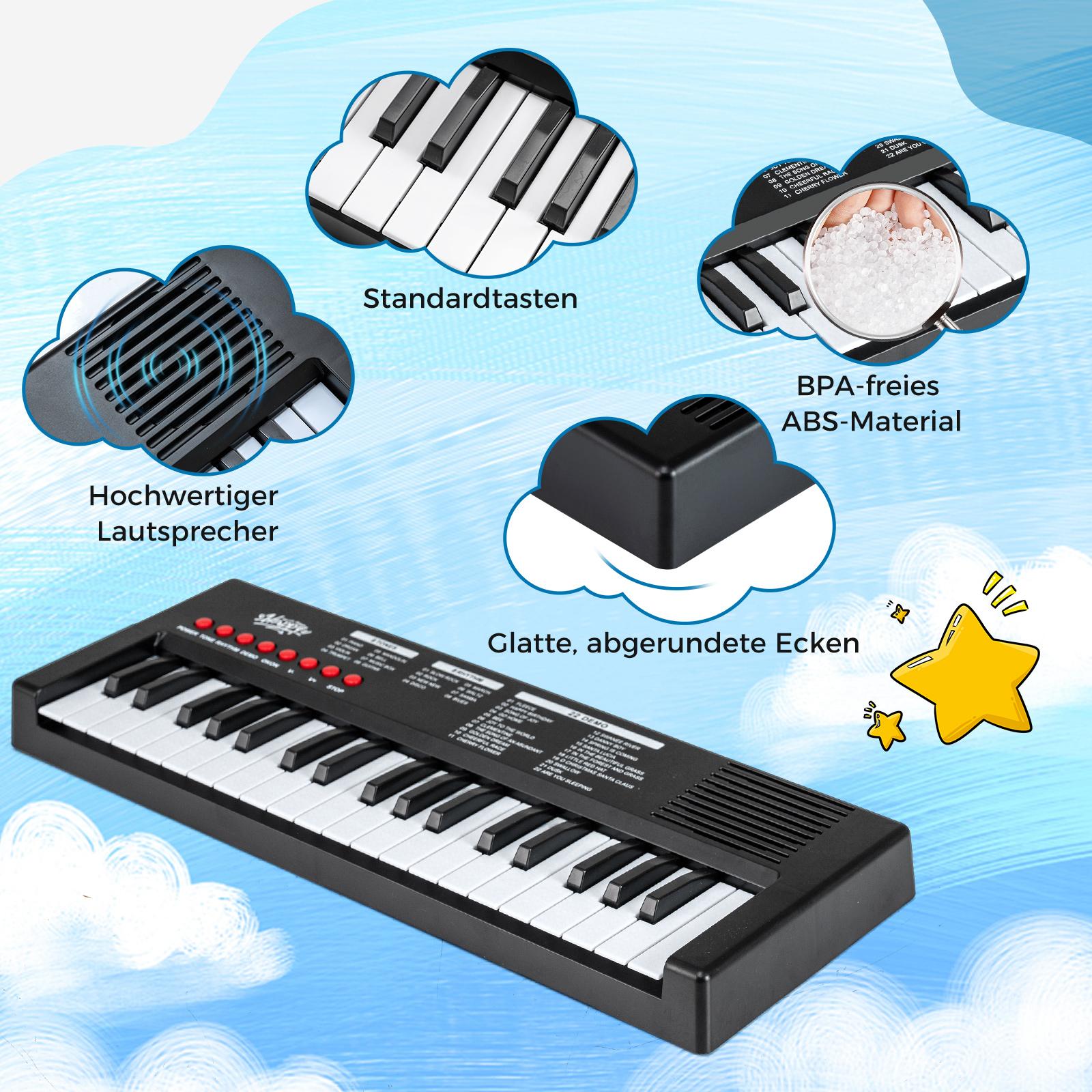 Κατάλληλο για παιδιά άνω των 3 ετών, το πιάνο 37 πλήκτρων ενθαρρύνει την ανάπτυξη μουσικών ικανοτήτων, πρακτικών δεξιοτήτων, υπομονής και συγκέντρωσης.