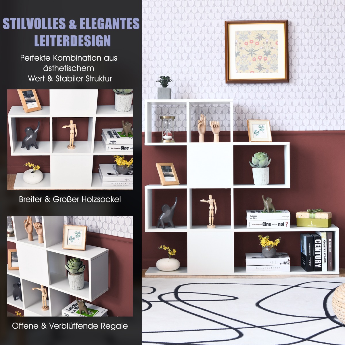 Costway Μοντέρνος 5-όροφος διαχωριστικός χώρος σε στυλ σκάλας από ξύλο για βιβλία 120 x 19,5 x 109 cm Λευκός CB10293WH