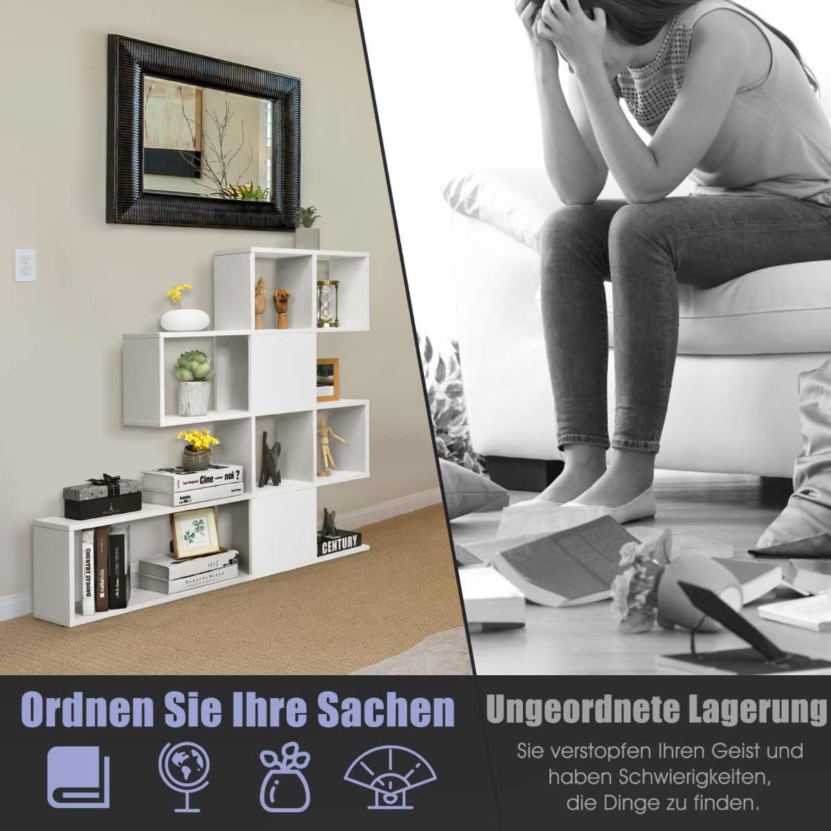 - Μοναδικό σκαλοειδές στυλ και πολυχρηστική χρήση: Αυτή η βιβλιοθήκη είναι σχεδιασμένη σε μοναδική σκαλοειδή μορφή, καθιστώντας την μια εξαιρετική προσθήκη στο σπίτι ή το γραφείο σας. Συνδυάζοντας πρακτικές λειτουργίες και καλλιτεχνικό σχεδιασμό, αυτή η βιβλιοθήκη ομορφαίνει και επεκτείνει τον αποθηκευτικό χώρο στο υπνοδωμάτιο, το καθιστικό, το γραφείο και την κουζίνα σας.