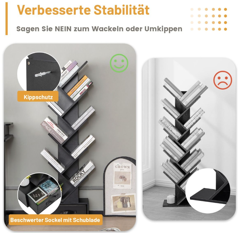 Η ραφιέρα σε σχήμα δέντρου προσφέρει άφθονο χώρο αποθήκευσης και καταλαμβάνει λίγο χώρο.Επιπλέον, το συρτάρι μπορεί να αφαιρεθεί, δημιουργώντας ένα επιπλέον ανοιχτό ράφι για την έκθεση διακοσμητικών αντικειμένων.