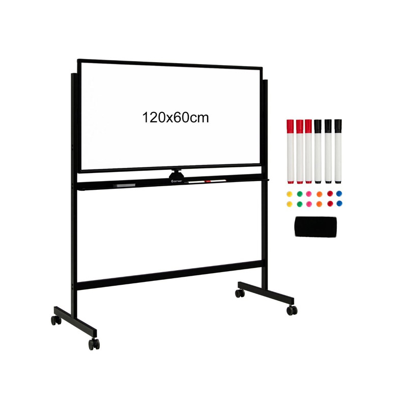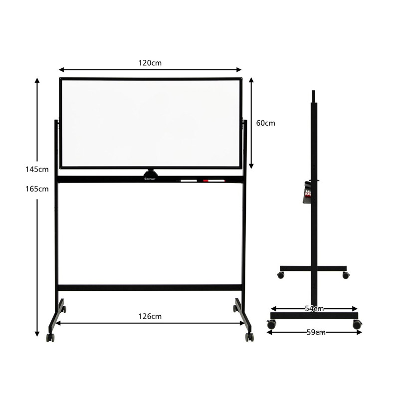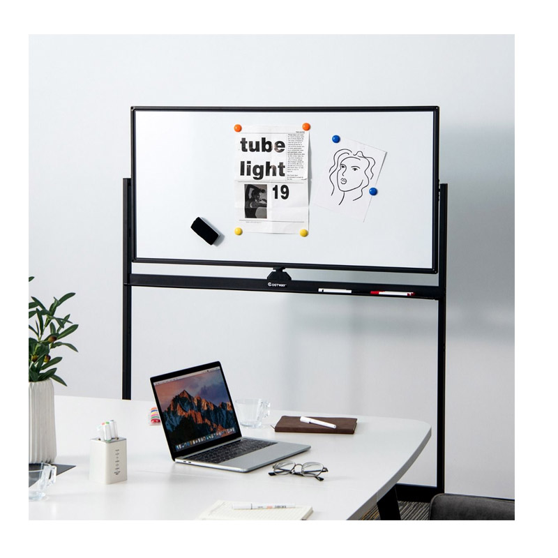 Τροχήλατος Μαγνητικός Περιστρεφόμενος Πίνακας Μαρκαδόρου Διπλής Όψης 126 x 59 x 145/165 cm Costway CB10390BK