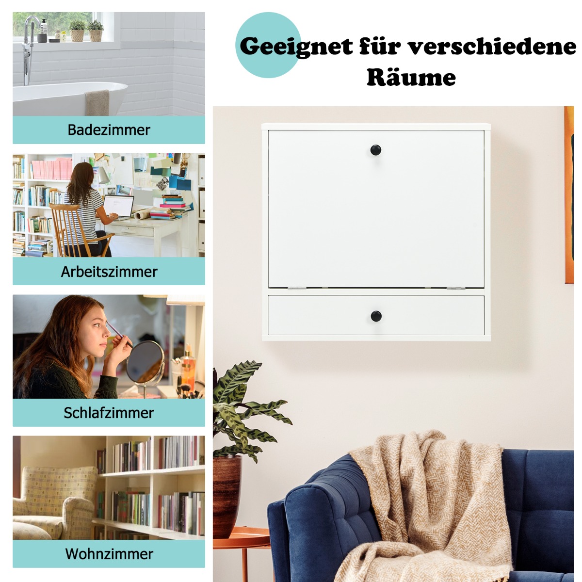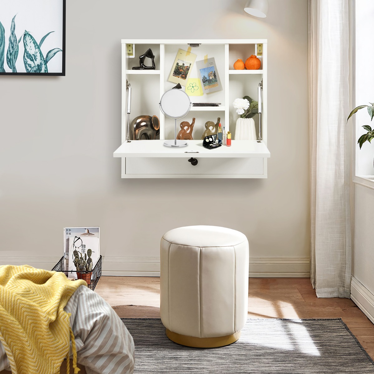Costway Πτυσσόμενο Επιτοίχιο Γραφείο Laptop με Αποθηκευτικούς Χώρους και Συρτάρι CB10463WH
