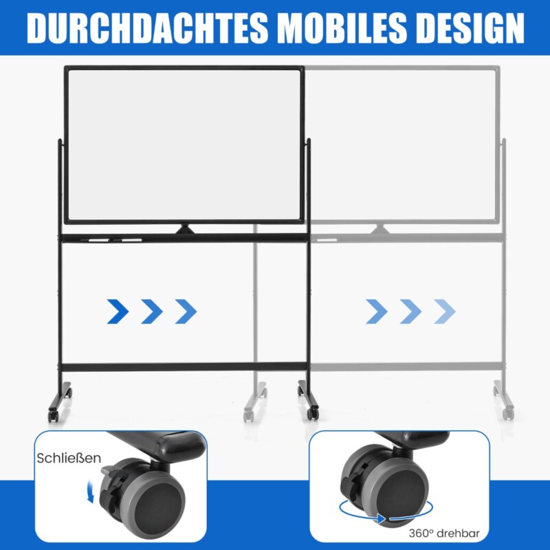 - Ελεύθερη Κινητικότητα: Εξοπλισμένος με 4 τροχούς με ενσωματωμένα φρένα, αυτός ο κυλιόμενος πίνακας προσφέρει εύκολη ελεύθερη κίνηση και ασφαλές κλείδωμα. Μπορείτε εύκολα να μετακινήσετε τον πίνακα σε οποιοδήποτε μέρος ή να τον ασφαλίσετε στη θέση του για διδασκαλία ή συνάντηση.