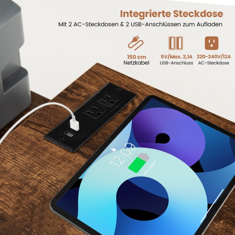 - Ενσωματωμένος Σταθμός Φόρτισης: Διαθέτει 2 πρίζες AC και 2 θύρες USB για εύκολη φόρτιση των συσκευών σας.