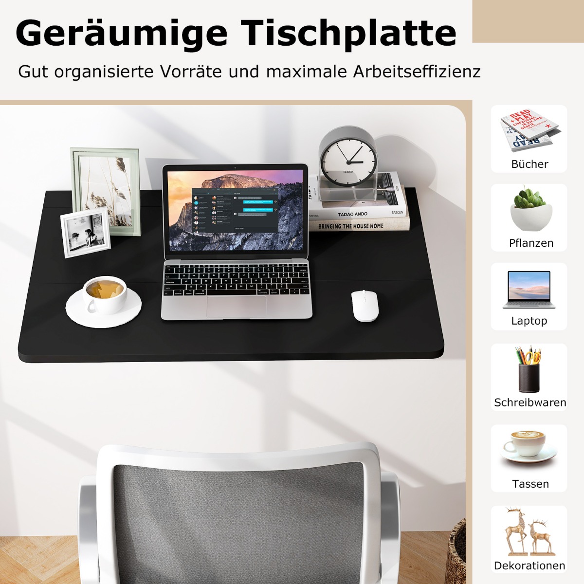 Costway Πτυσσόμενο Γραφείο Εξοικονόμησης Χώρου με Ρυθμιζόμενη Επιφάνεια Εργασίας και Ανθεκτική Κατασκευή από Μασίφ Ξύλο CB10641BK