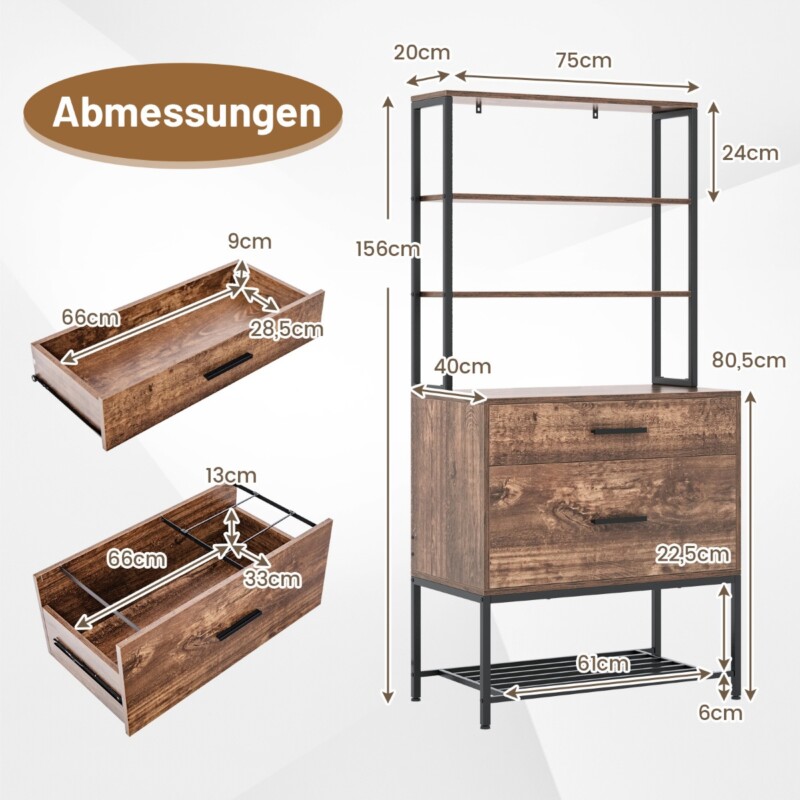 Costway Πολυλειτουργικό Ντουλάπι Αρχείων με Ράφια, Συρτάρια και Βάση Εκτυπωτή σε Βιομηχανικό Στυλ CB10569CF+
